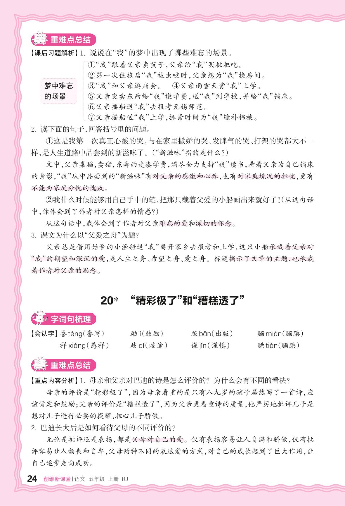 2024秋上册五年级语文人教版 助学手册 第六单元——20. “精彩极了”和“糟糕透了”