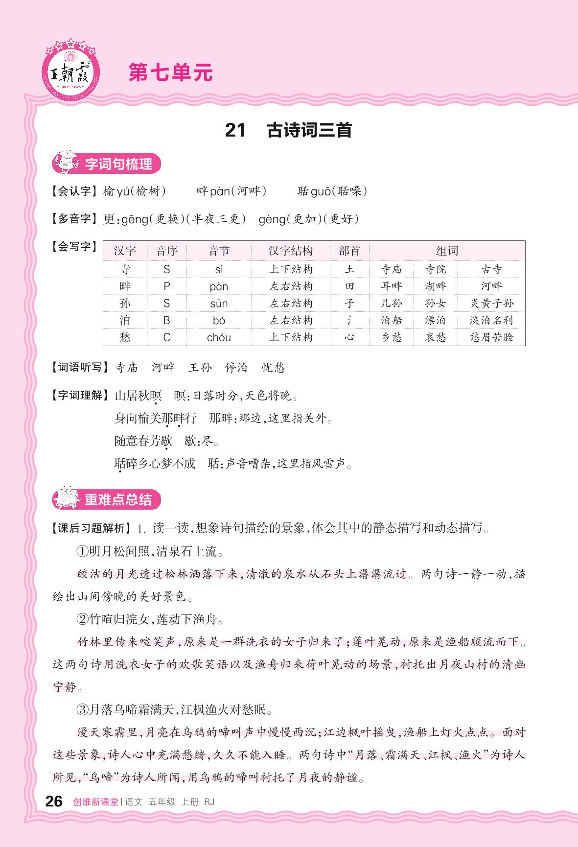 2024秋上册五年级语文人教版 助学手册 第七单元——21. 古诗词三首