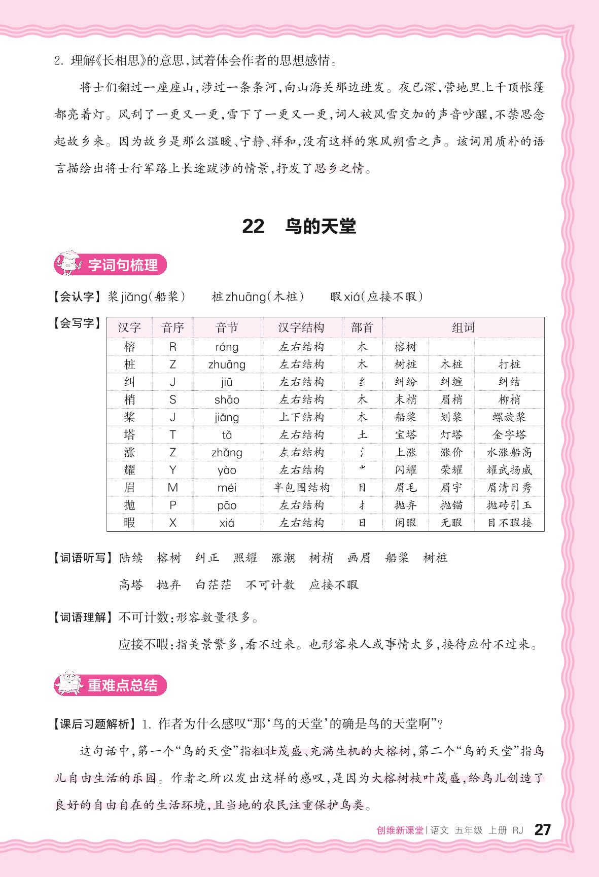 2024秋上册五年级语文人教版 助学手册 第七单元——22. 鸟的天堂