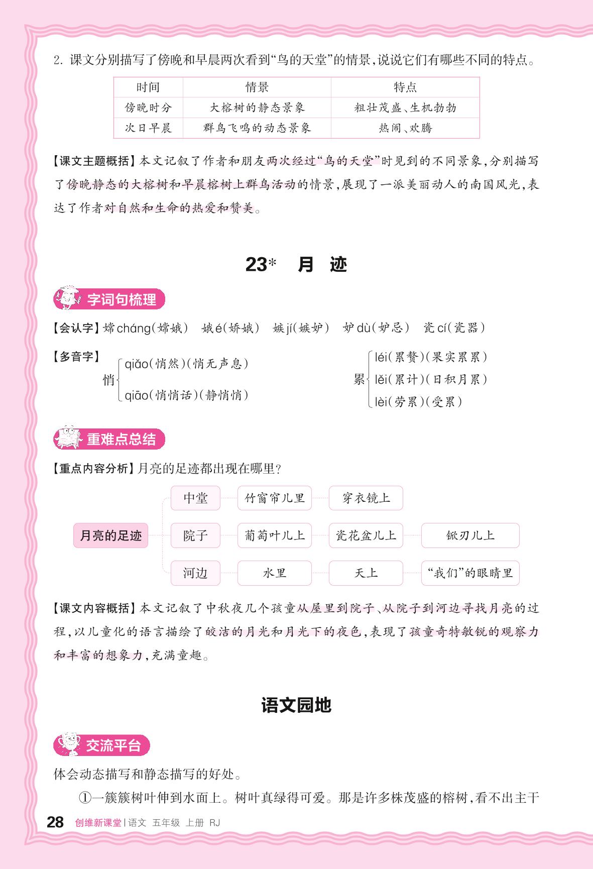 2024秋上册五年级语文人教版 助学手册 第七单元——语文园地