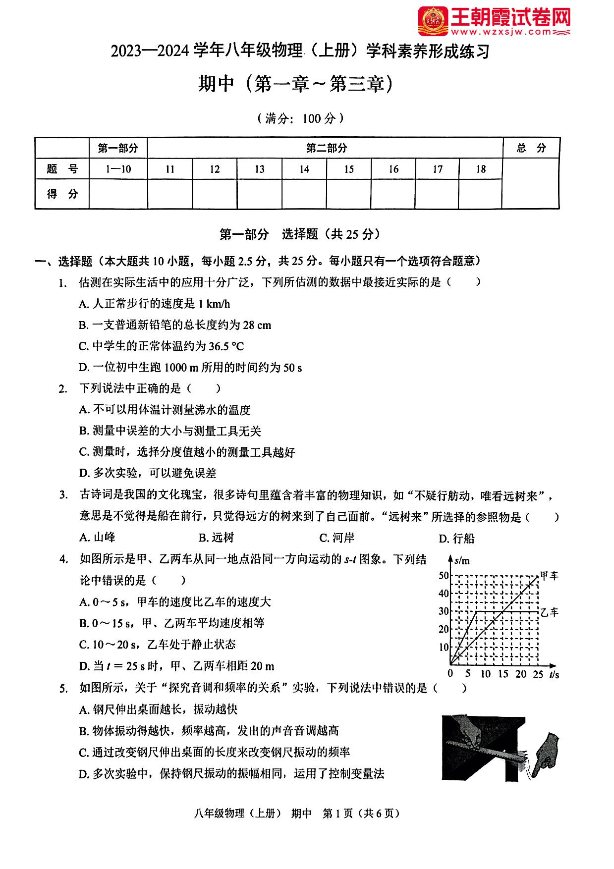 广东省深圳市龙岗区宏扬学校2023-2024学年上学期期中学科素养试题八年级物理(人教版)