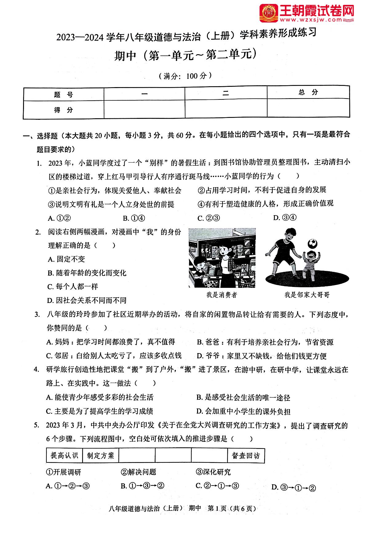 广东省深圳市龙岗区宏扬学校2023-2024学年上学期期中学科素养试题八年级道德与法治(人教版)