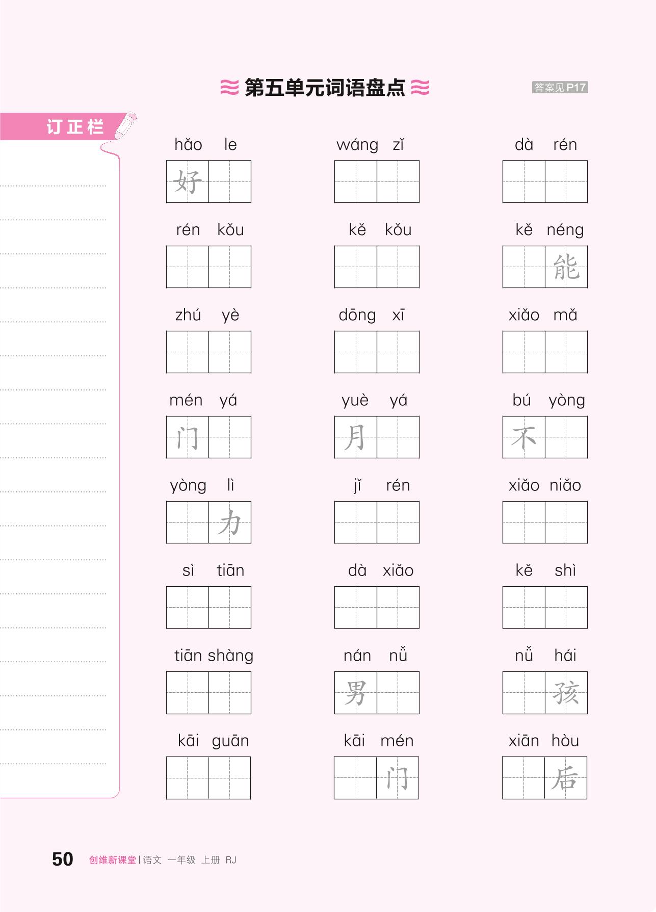 2024秋上册一年级语文人教版 第五单元词语盘点