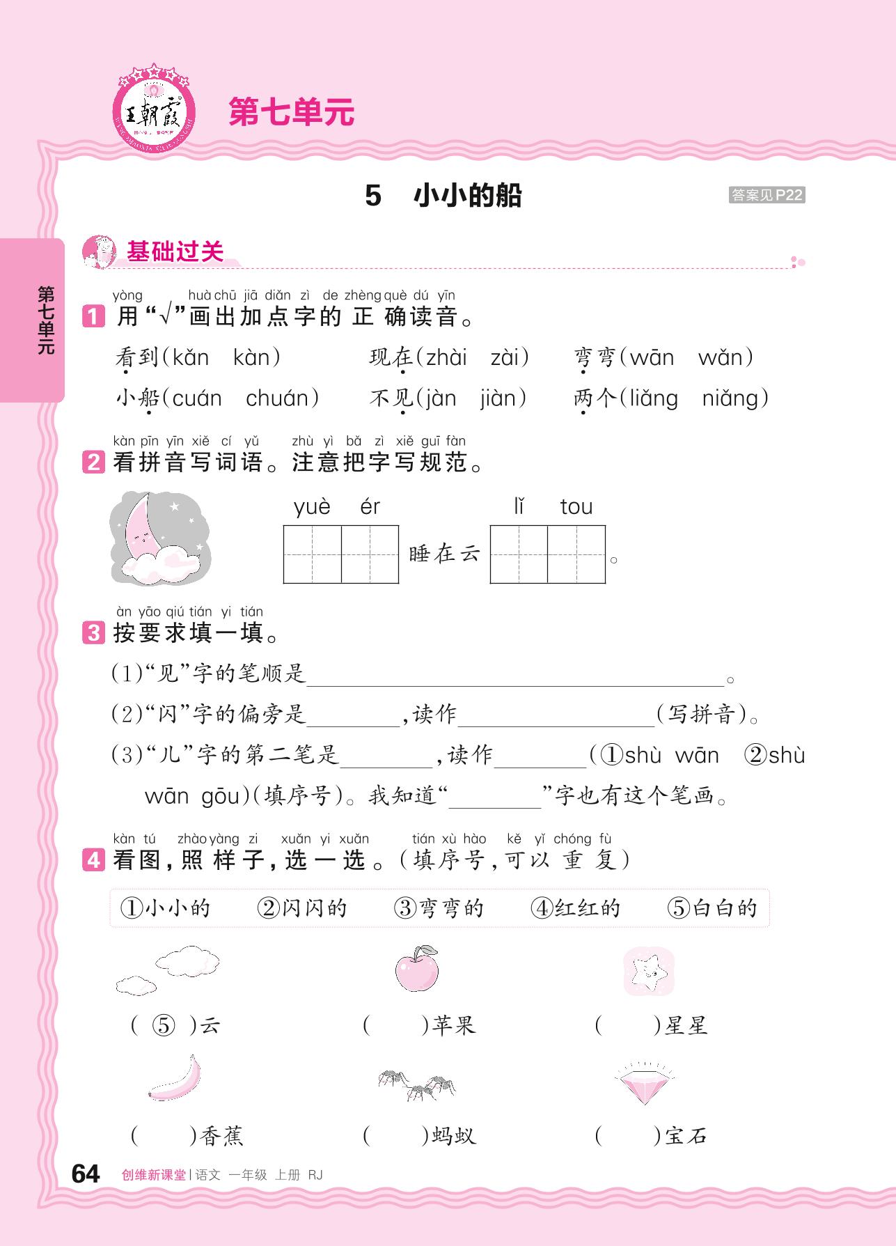 2024秋上册一年级语文人教版 第七单元 阅读——5. 小小的船_R240820104356762