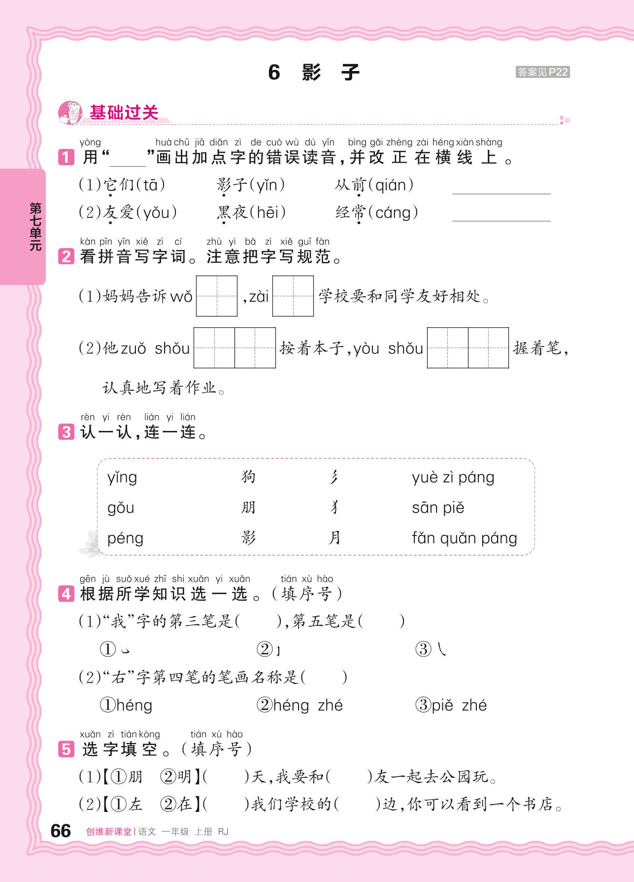 2024秋上册一年级语文人教版 第七单元 阅读——6. 影子_R240820104356432