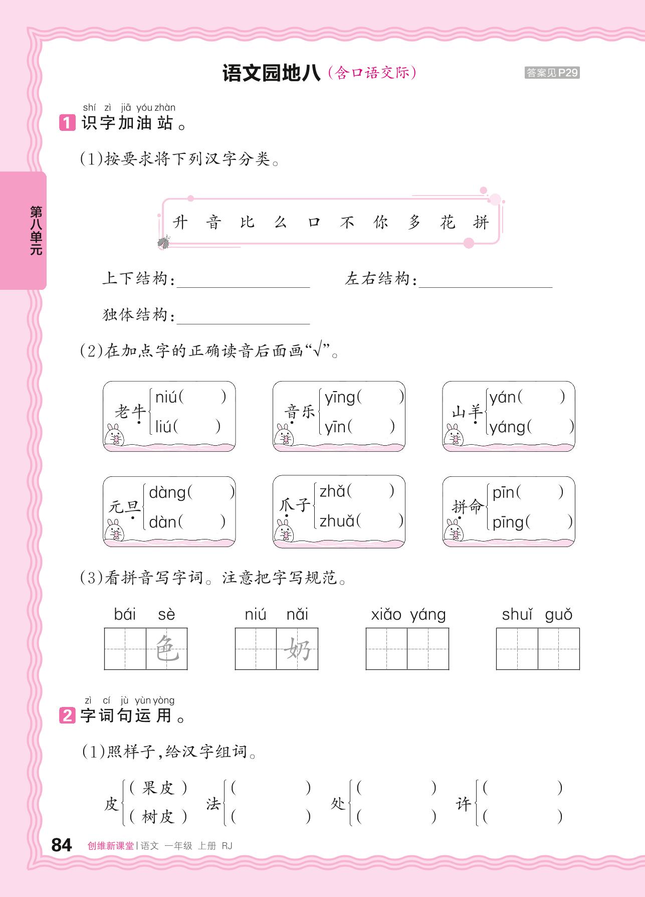 2024秋上册一年级语文人教版 第八单元 阅读——语文园地八