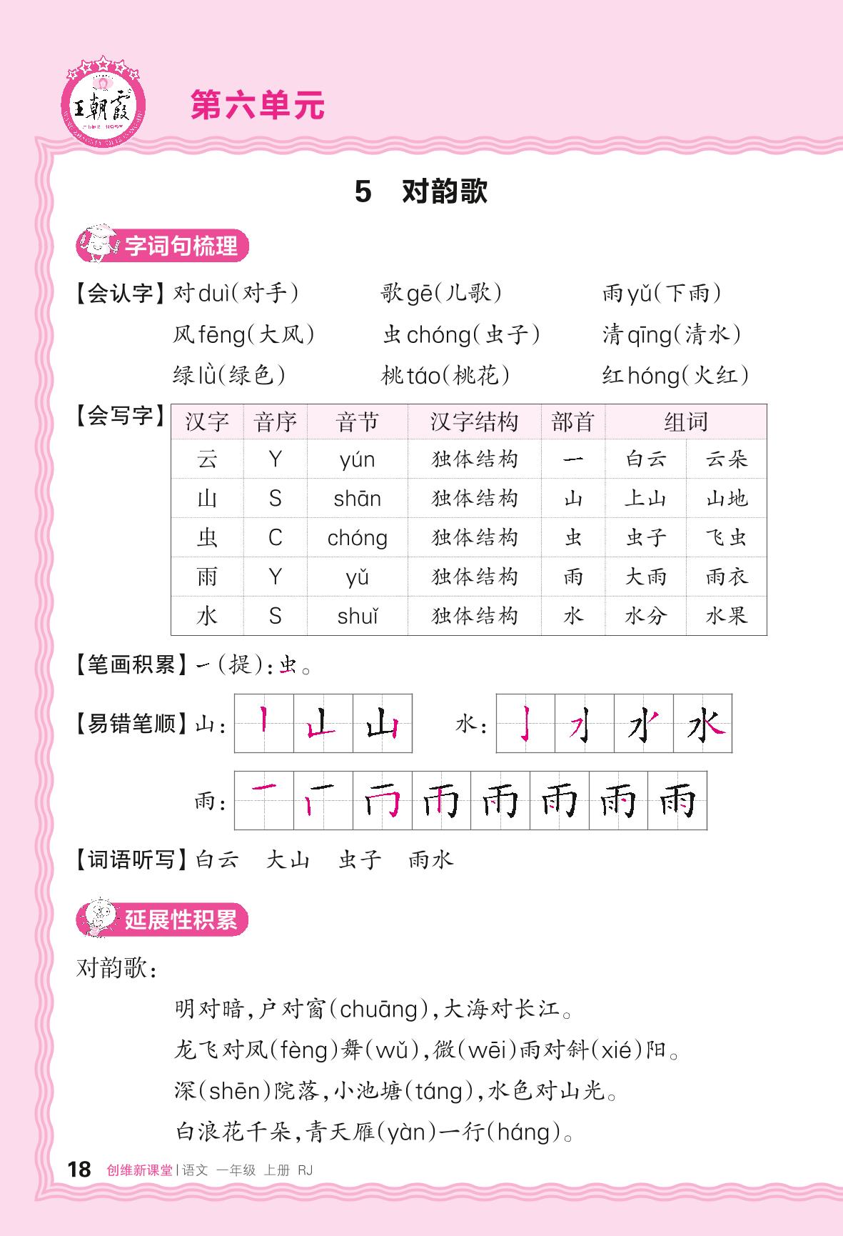 2024秋上册一年级语文人教版 助学手册 第六单元——5. 对韵歌