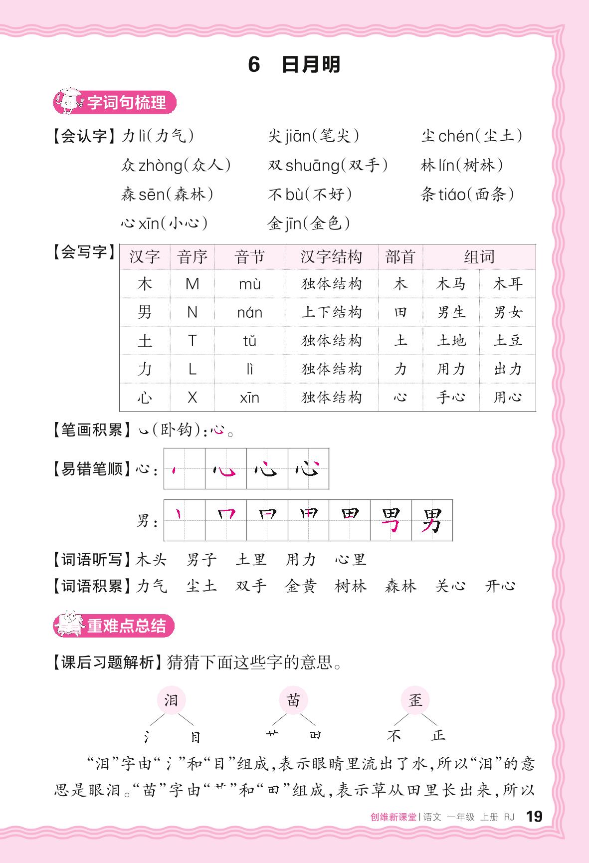 2024秋上册一年级语文人教版 助学手册 第六单元——6. 日月明