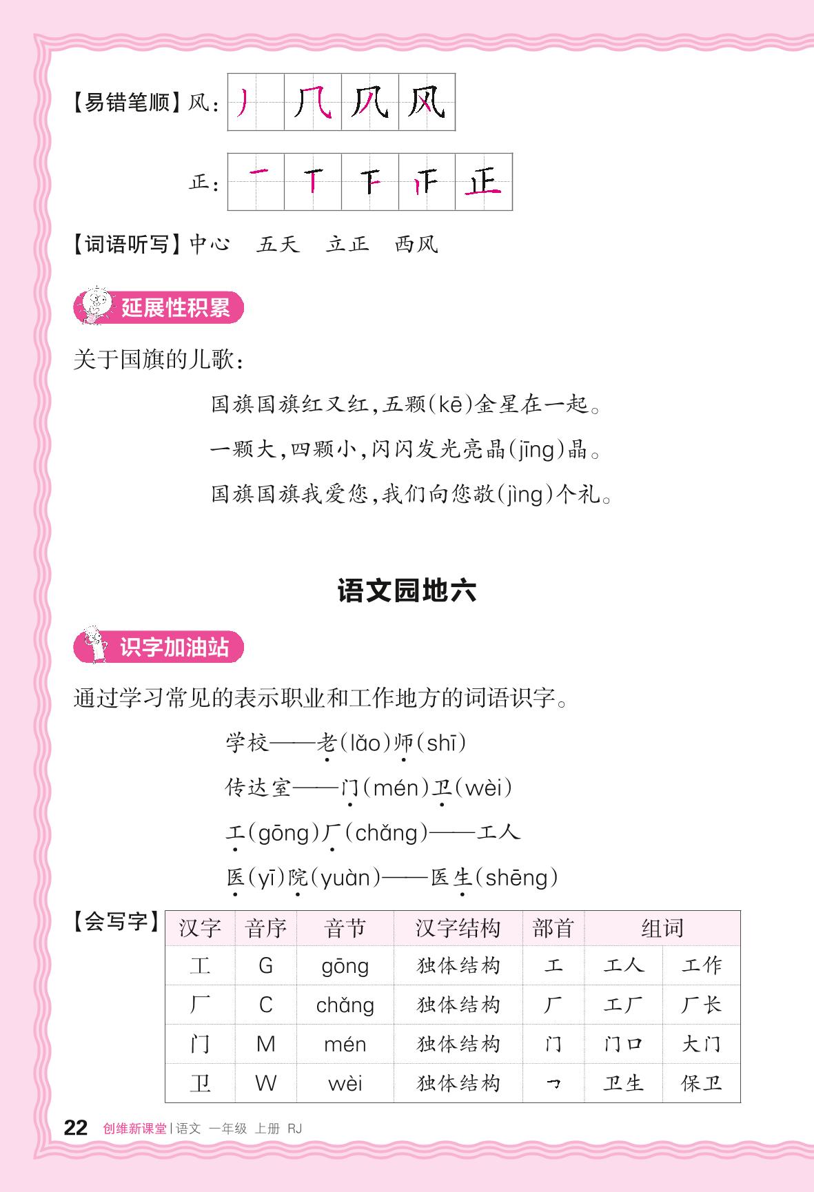 2024秋上册一年级语文人教版 助学手册 第六单元——语文园地六