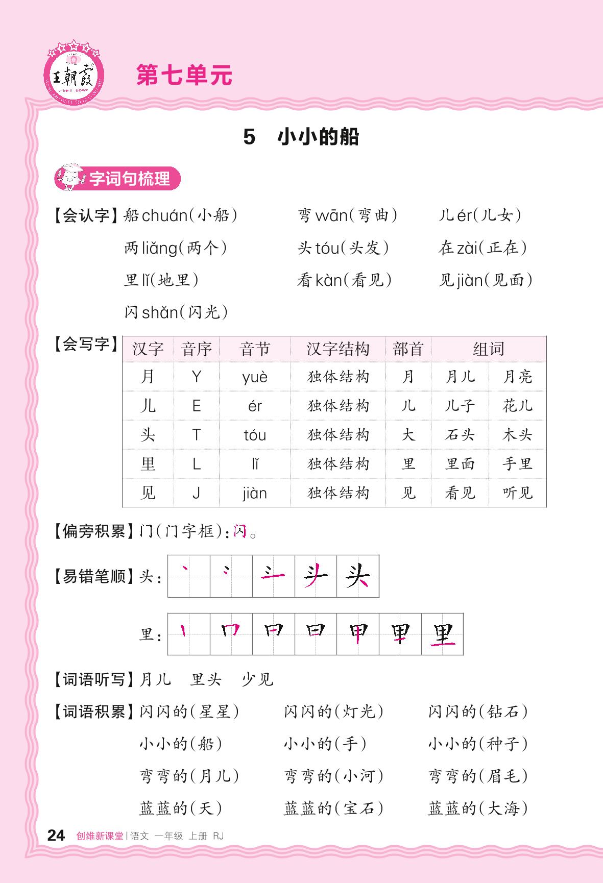 2024秋上册一年级语文人教版 助学手册 第七单元——5. 小小的船