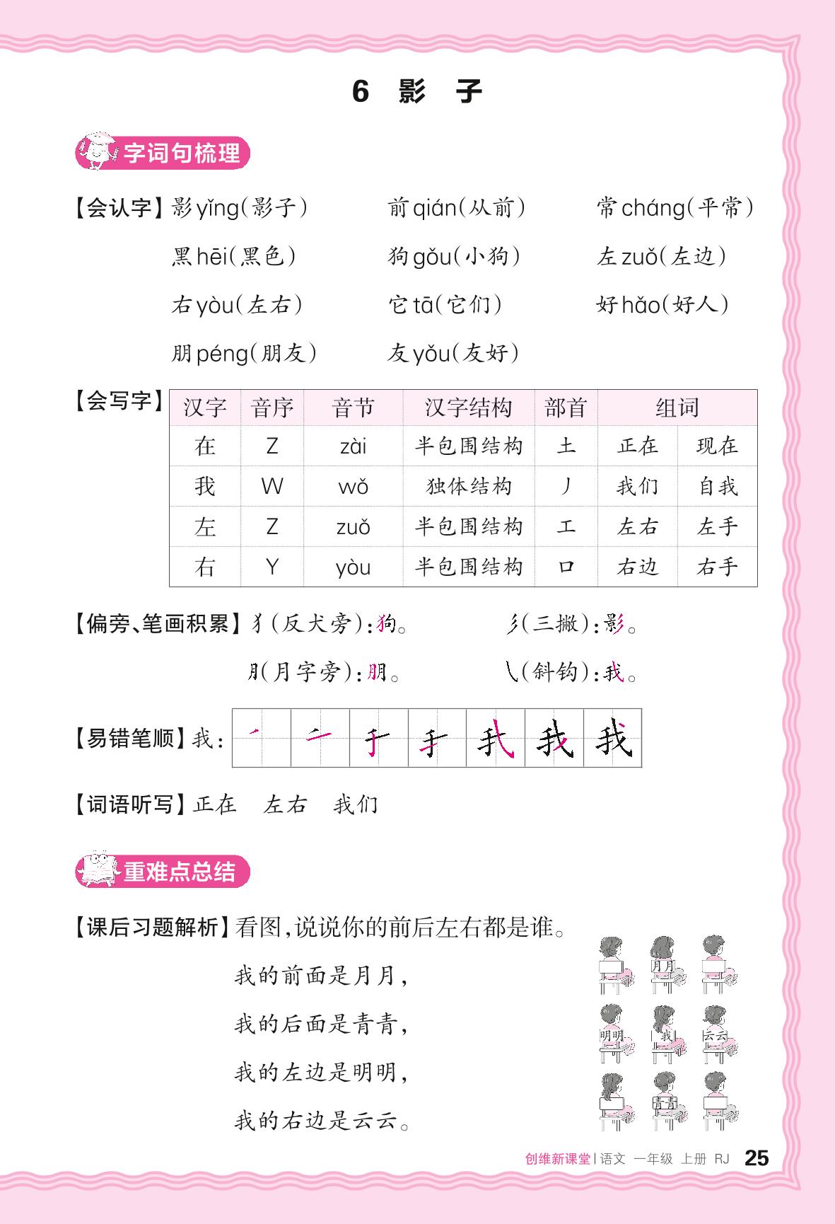 2024秋上册一年级语文人教版 助学手册 第七单元——6. 影子