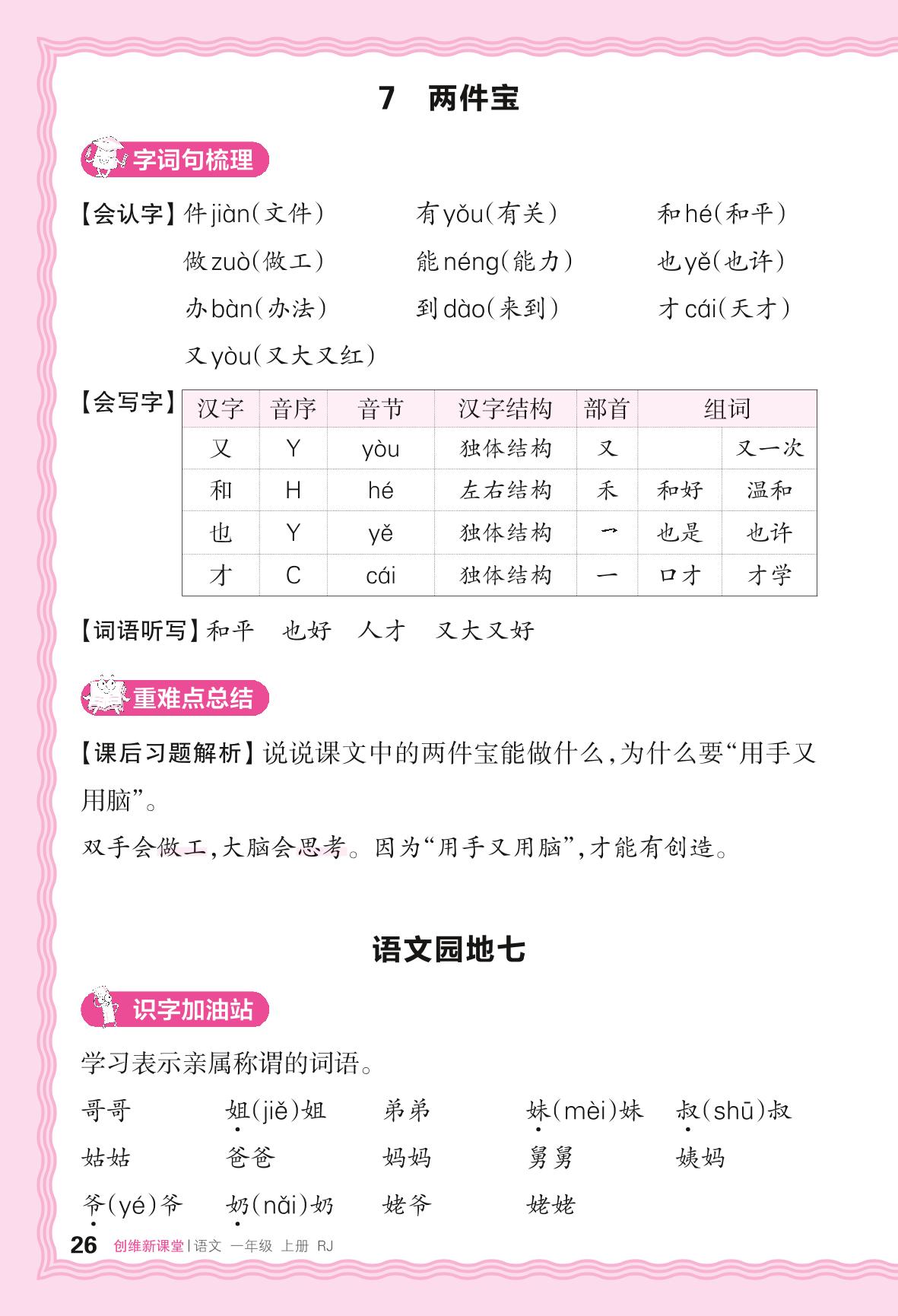 2024秋上册一年级语文人教版 助学手册 第七单元——语文园地七