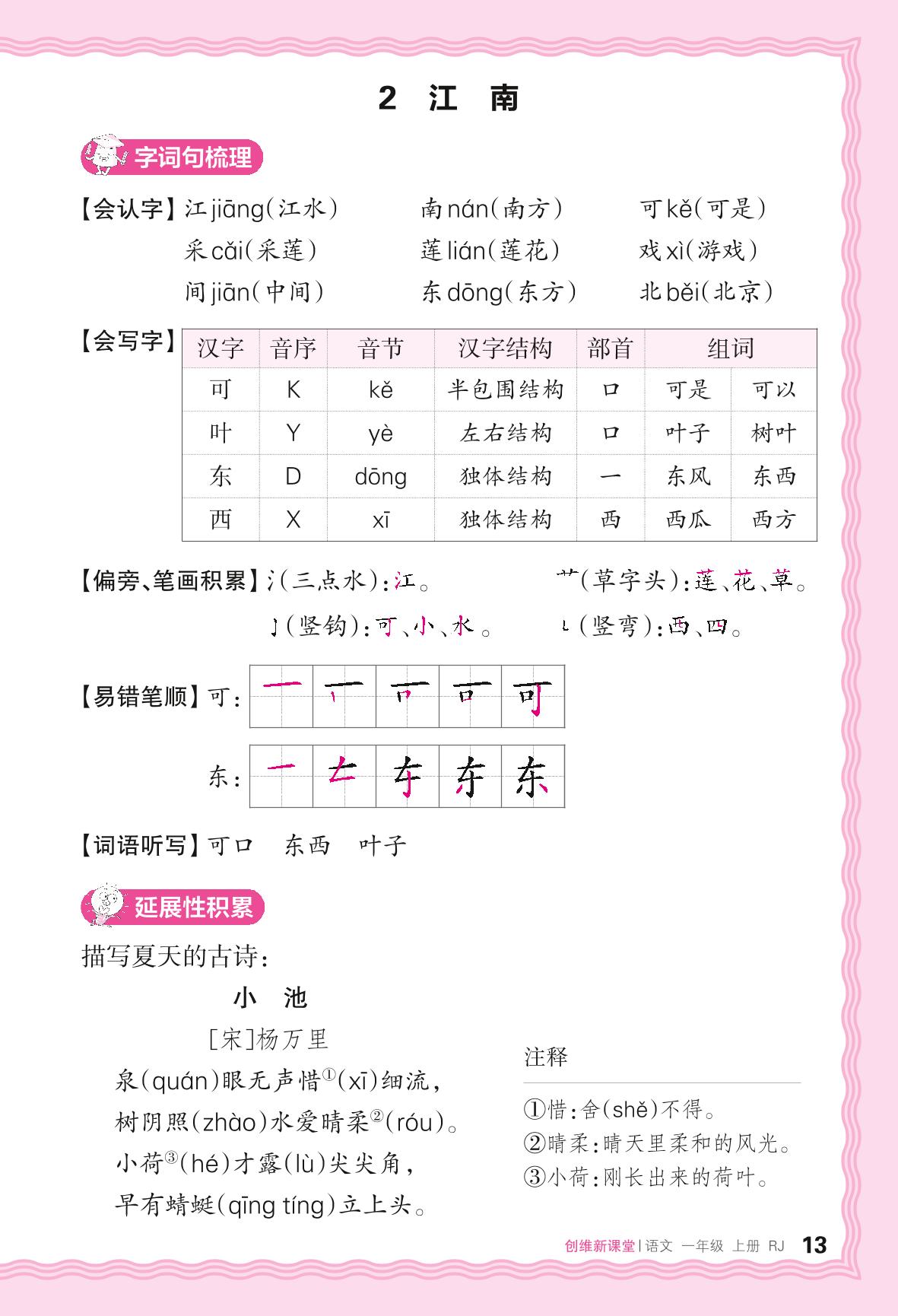 2024秋上册一年级语文人教版 助学手册 第五单元——2. 江南