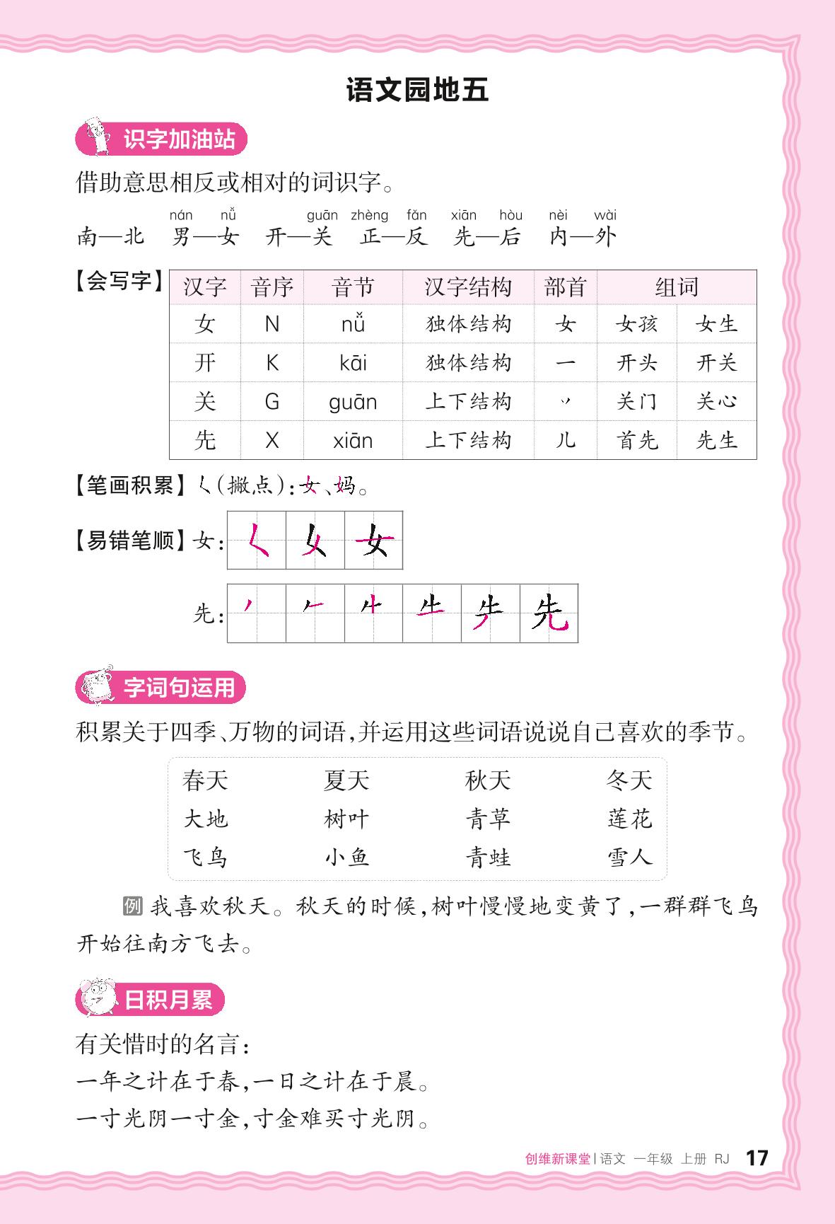 2024秋上册一年级语文人教版 助学手册 第五单元——语文园地五