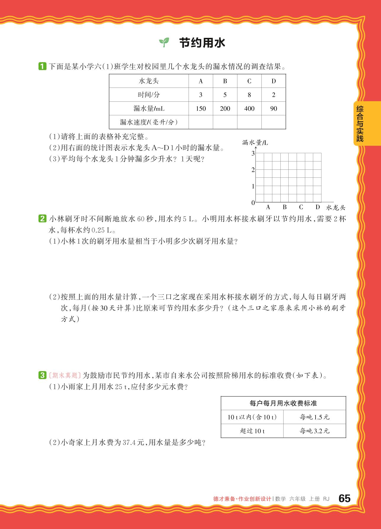 2024秋上册六年级数学人教版 综合与实践——节约用水