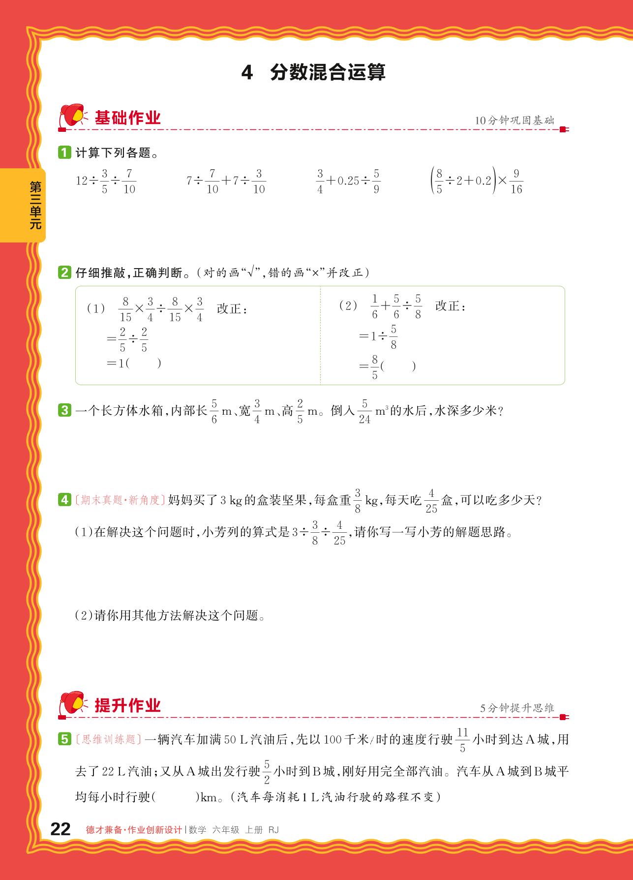 2024秋上册六年级数学人教版 第三单元 分数除法——4. 分数混合运算_R240820105740724