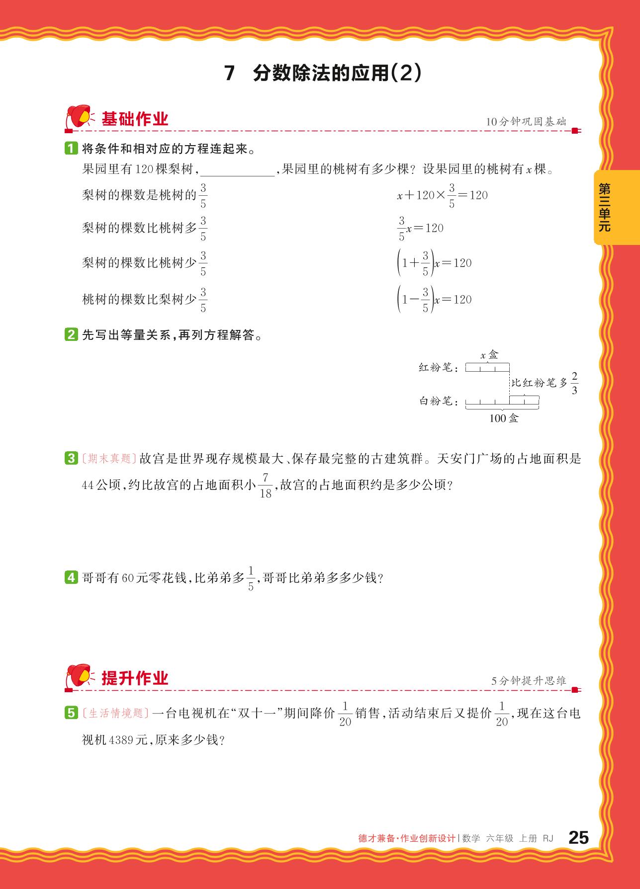 2024秋上册六年级数学人教版 第三单元 分数除法——7. 分数除法的应用(2)