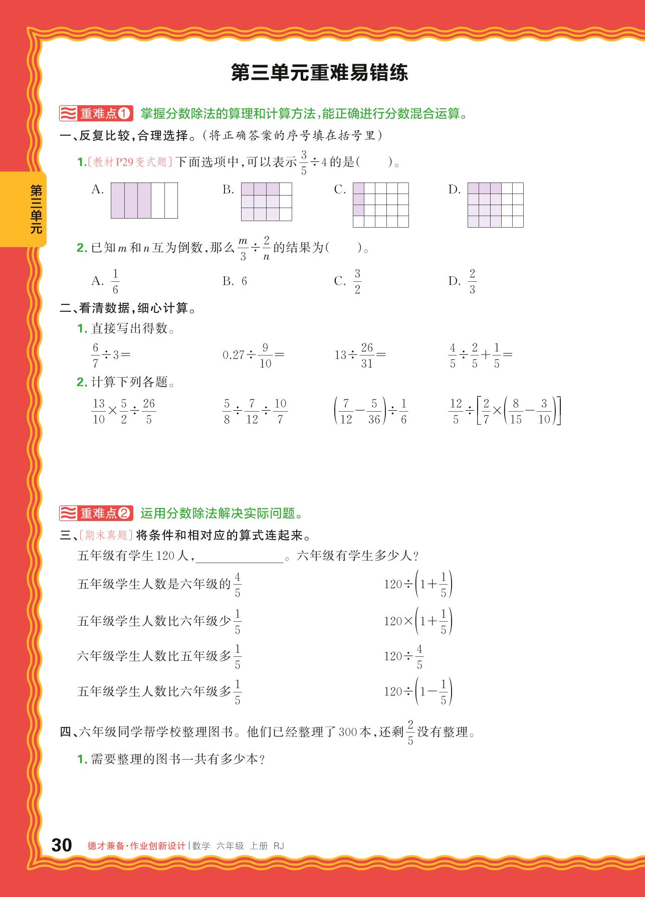 2024秋上册六年级数学人教版 第三单元重难易错练