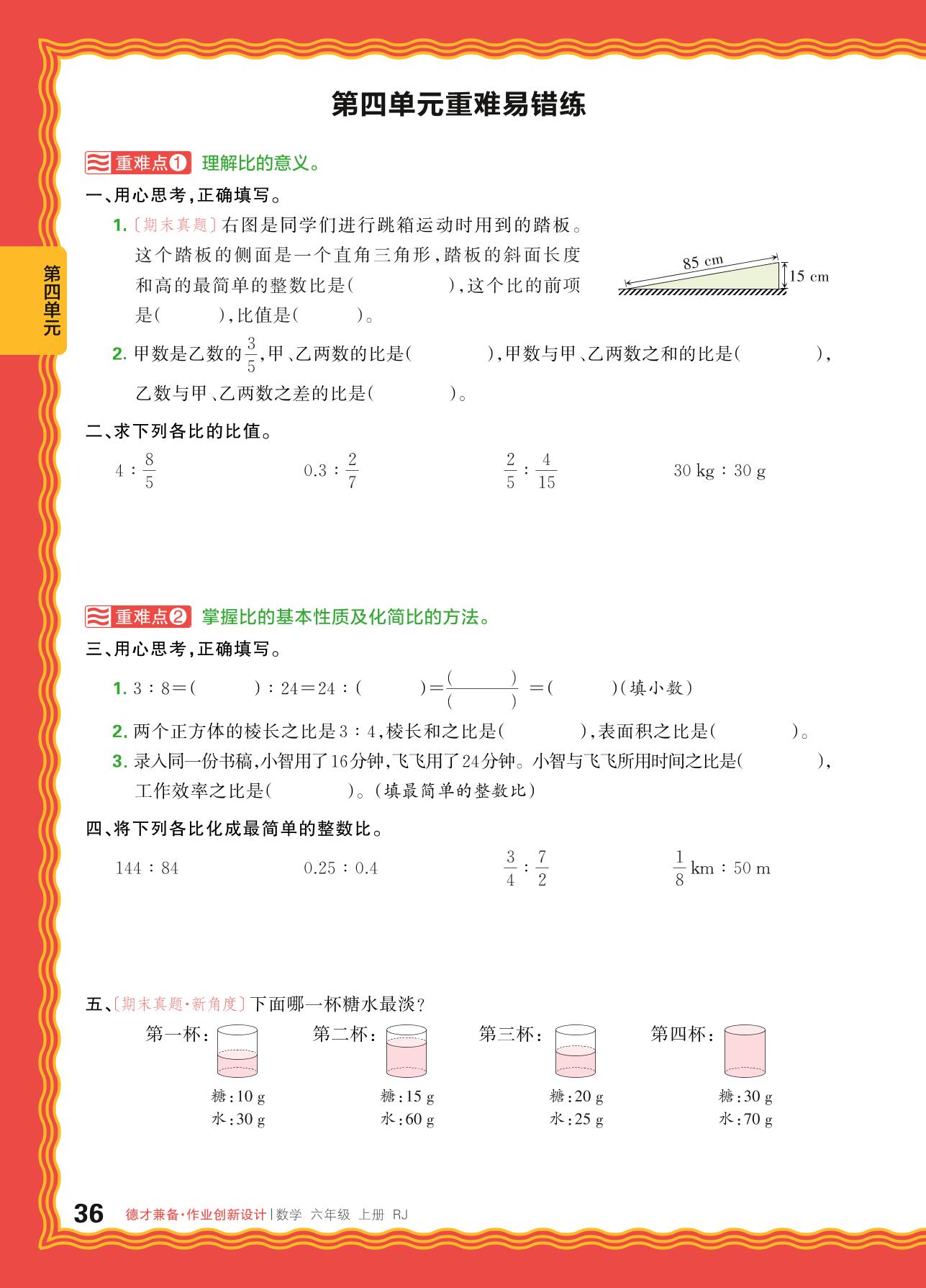 2024秋上册六年级数学人教版 第四单元重难易错练