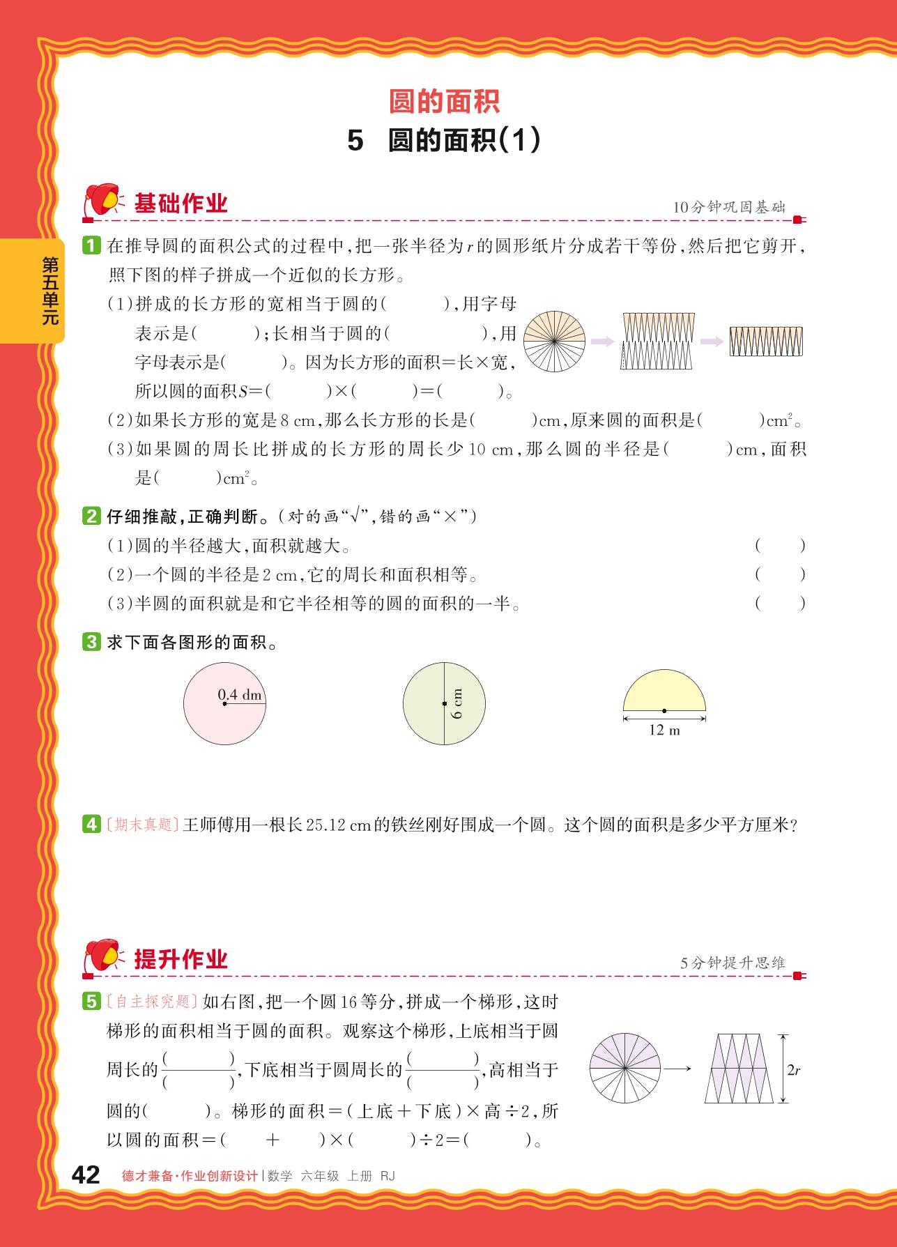 2024秋上册六年级数学人教版 第五单元 圆——5. 圆的面积(1)_R240820105746546