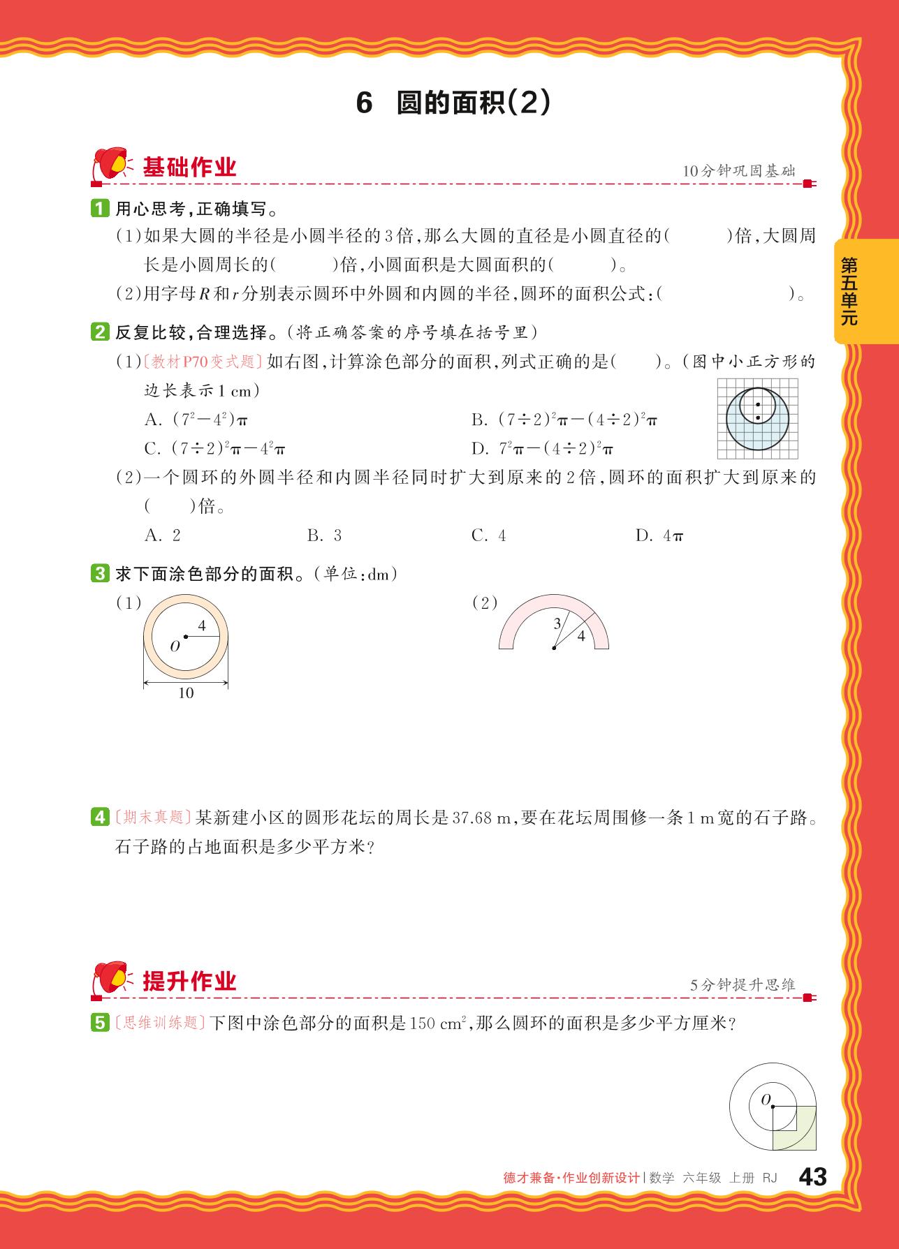 2024秋上册六年级数学人教版 第五单元 圆——6. 圆的面积(2)_R240820105747787