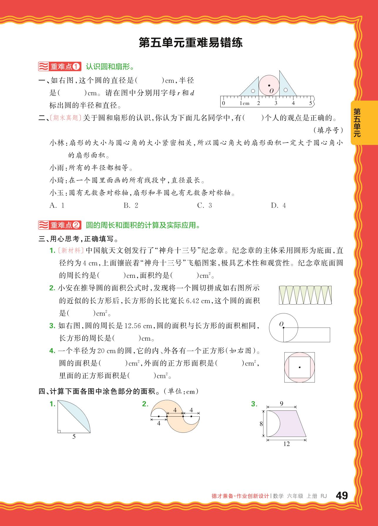 2024秋上册六年级数学人教版 第五单元重难易错练