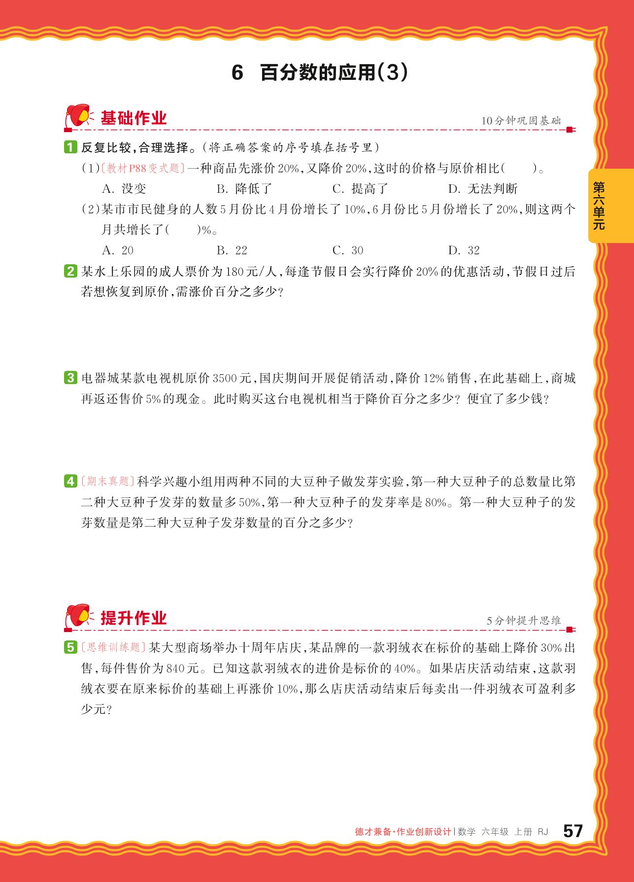 2024秋上册六年级数学人教版 第六单元 百分数(一)——6. 百分数的应用(3)