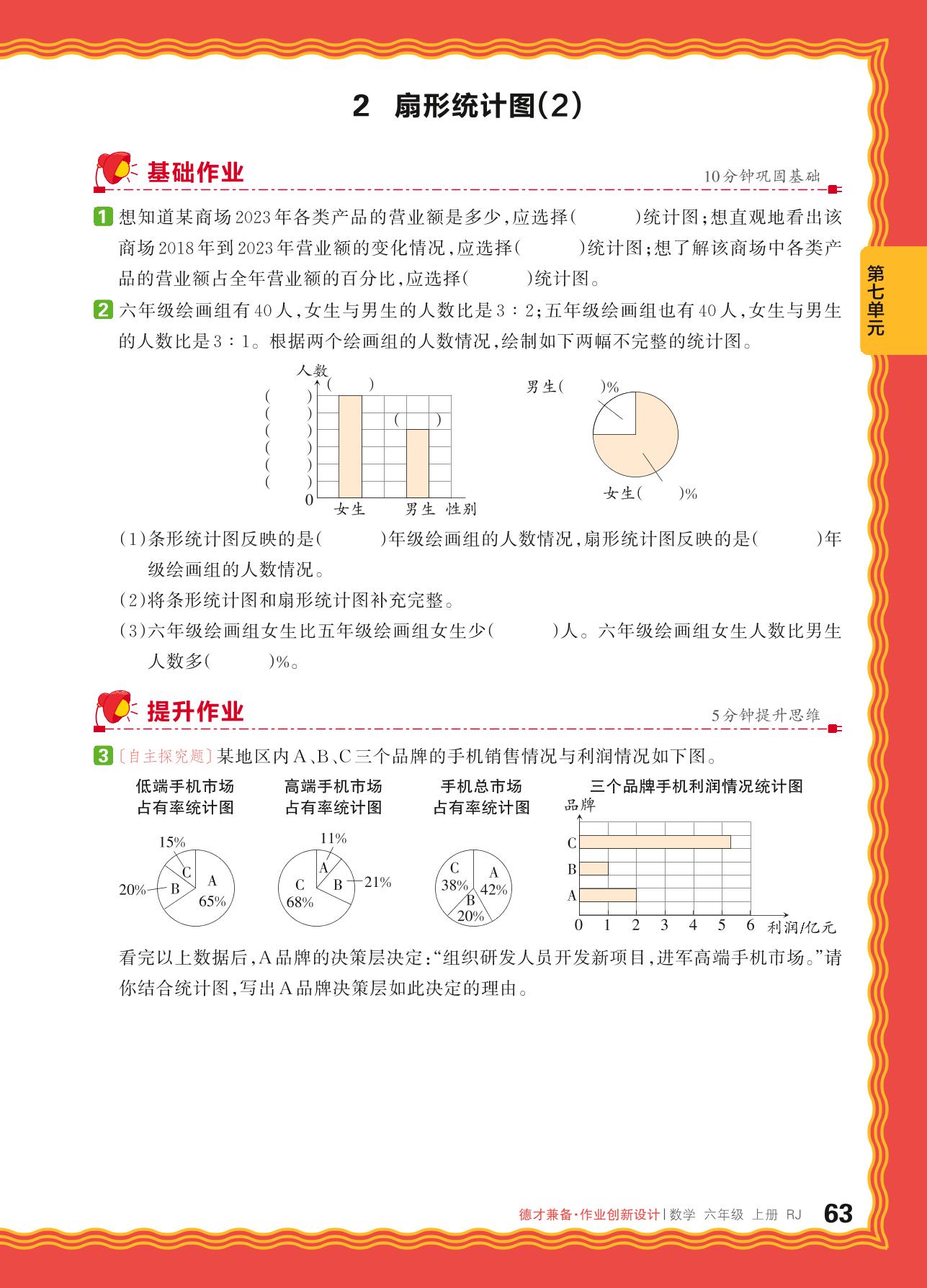 2024秋上册六年级数学人教版 第七单元 扇形统计图——2. 扇形统计图(2)