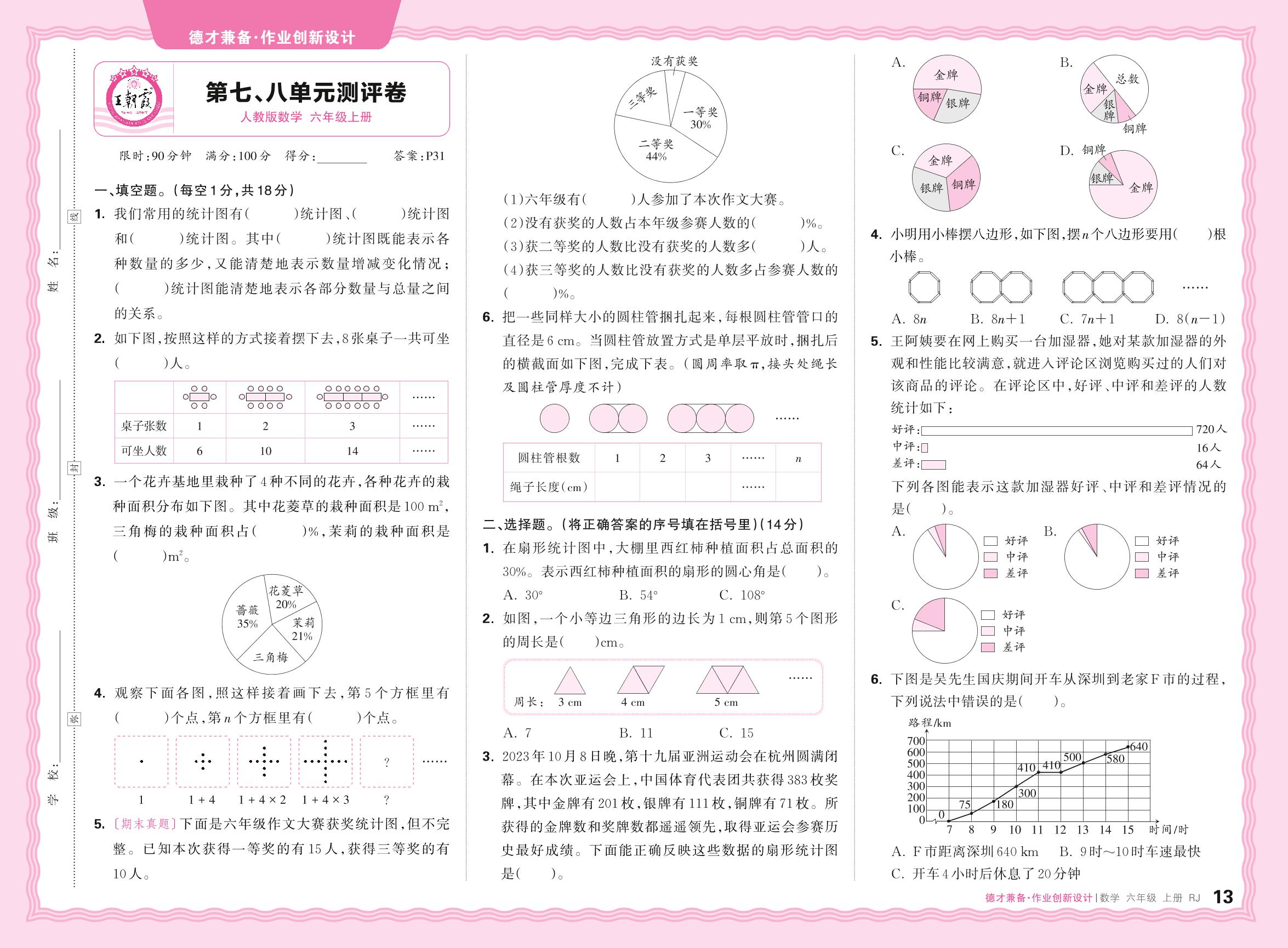 2024秋上册六年级数学人教版 第七、八单元测评卷