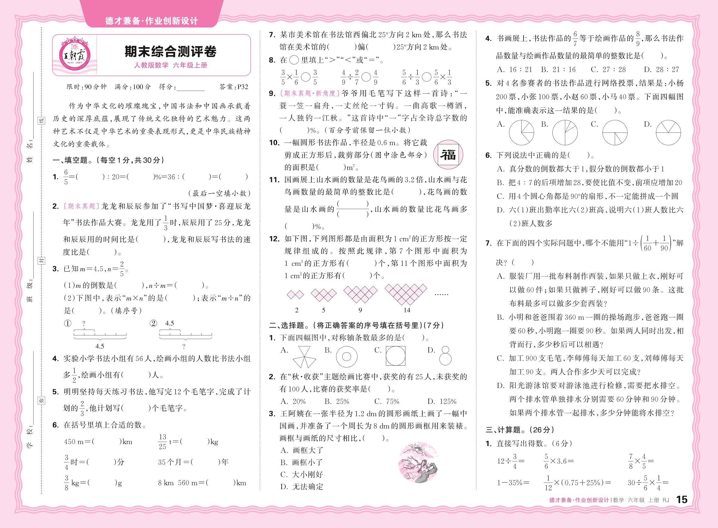 2024秋上册六年级数学人教版 期末综合测评卷