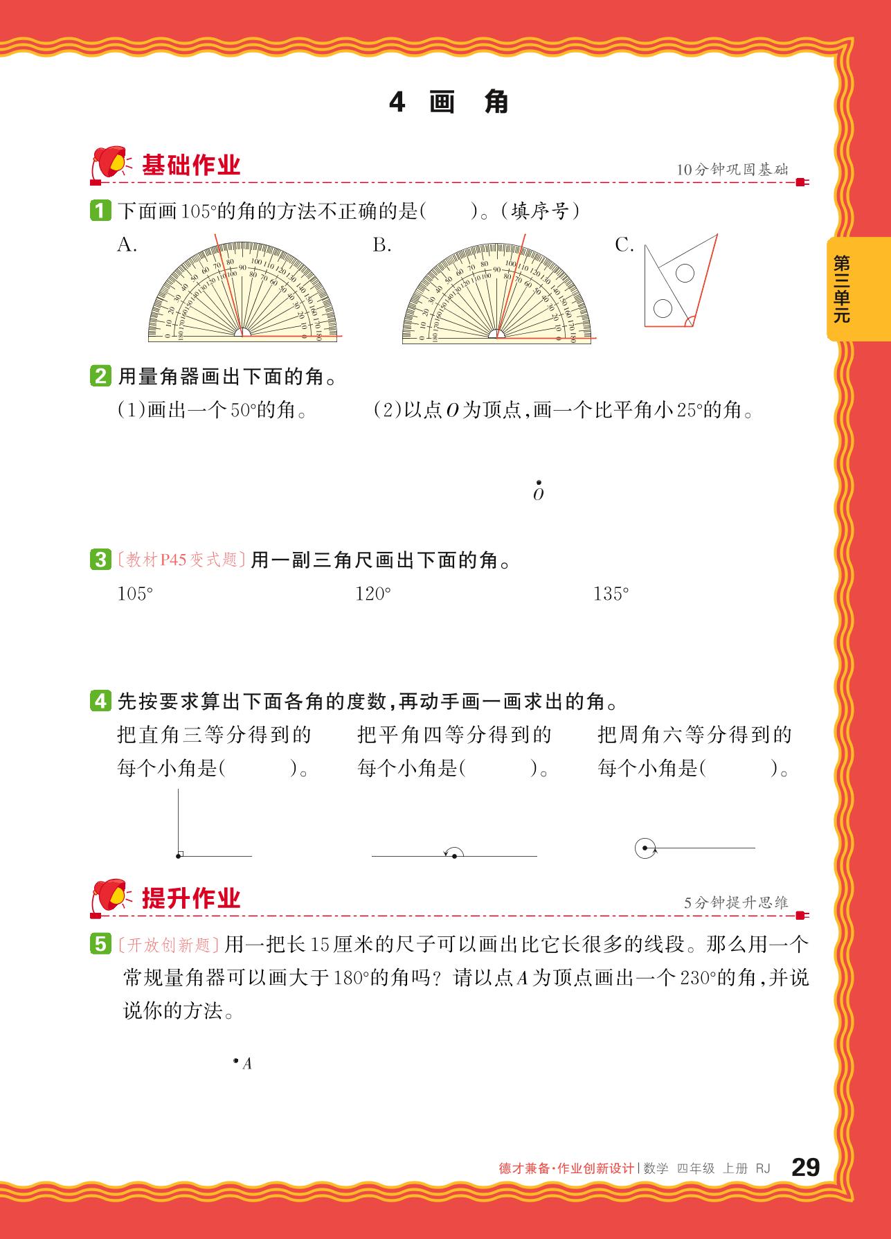 2024秋上册四年级数学人教版 第三单元 角的度量——4. 画角_R240820111340718