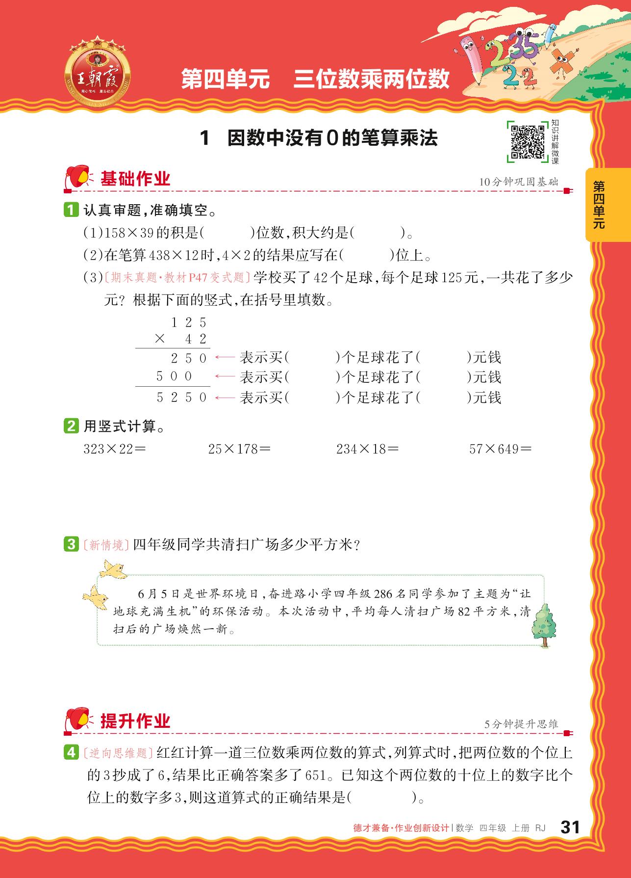2024秋上册四年级数学人教版 第四单元 三位数乘两位数——1. 因数中没有0的笔算乘法