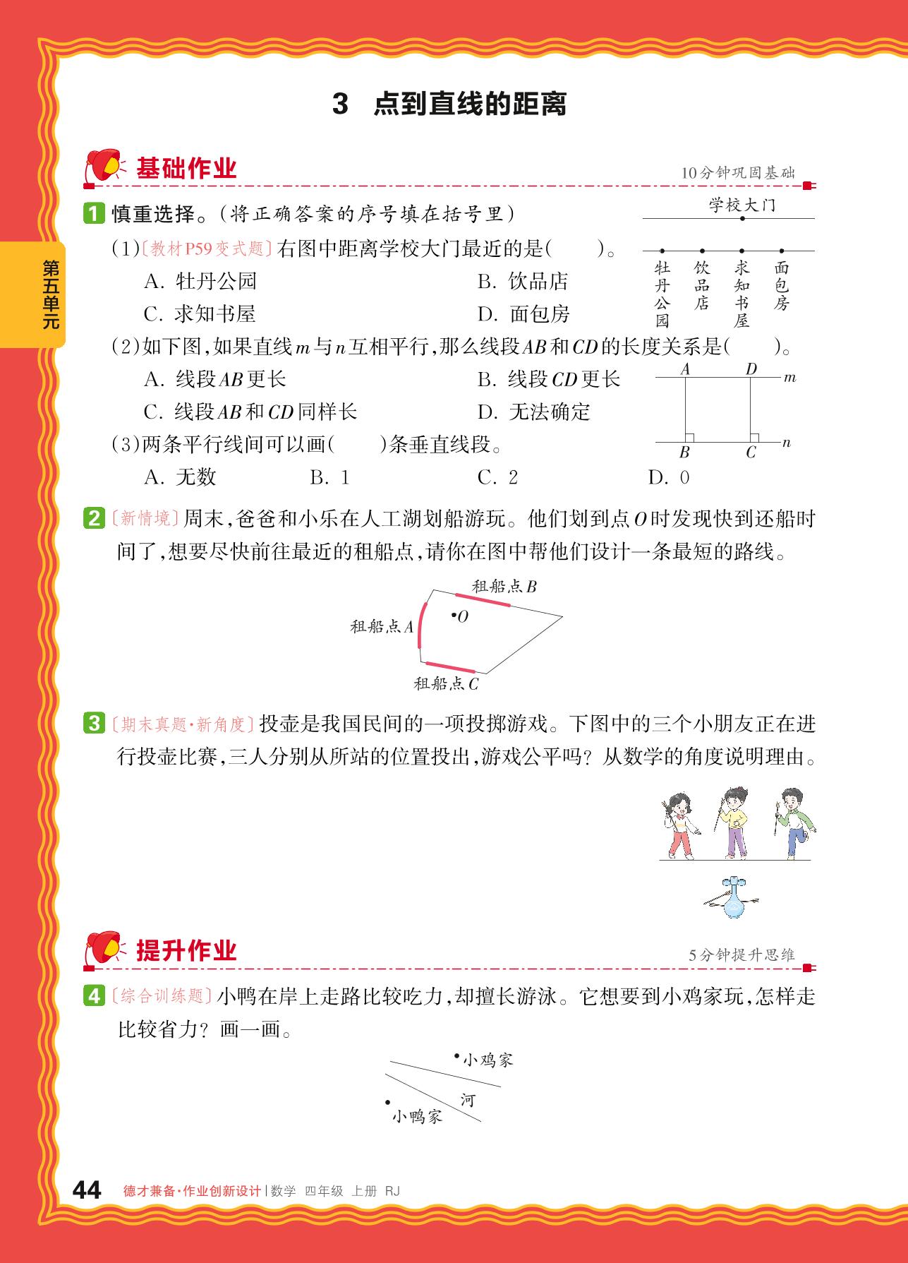 2024秋上册四年级数学人教版 第五单元 平行四边形和梯形——3. 点到直线的距离_R240820111345407