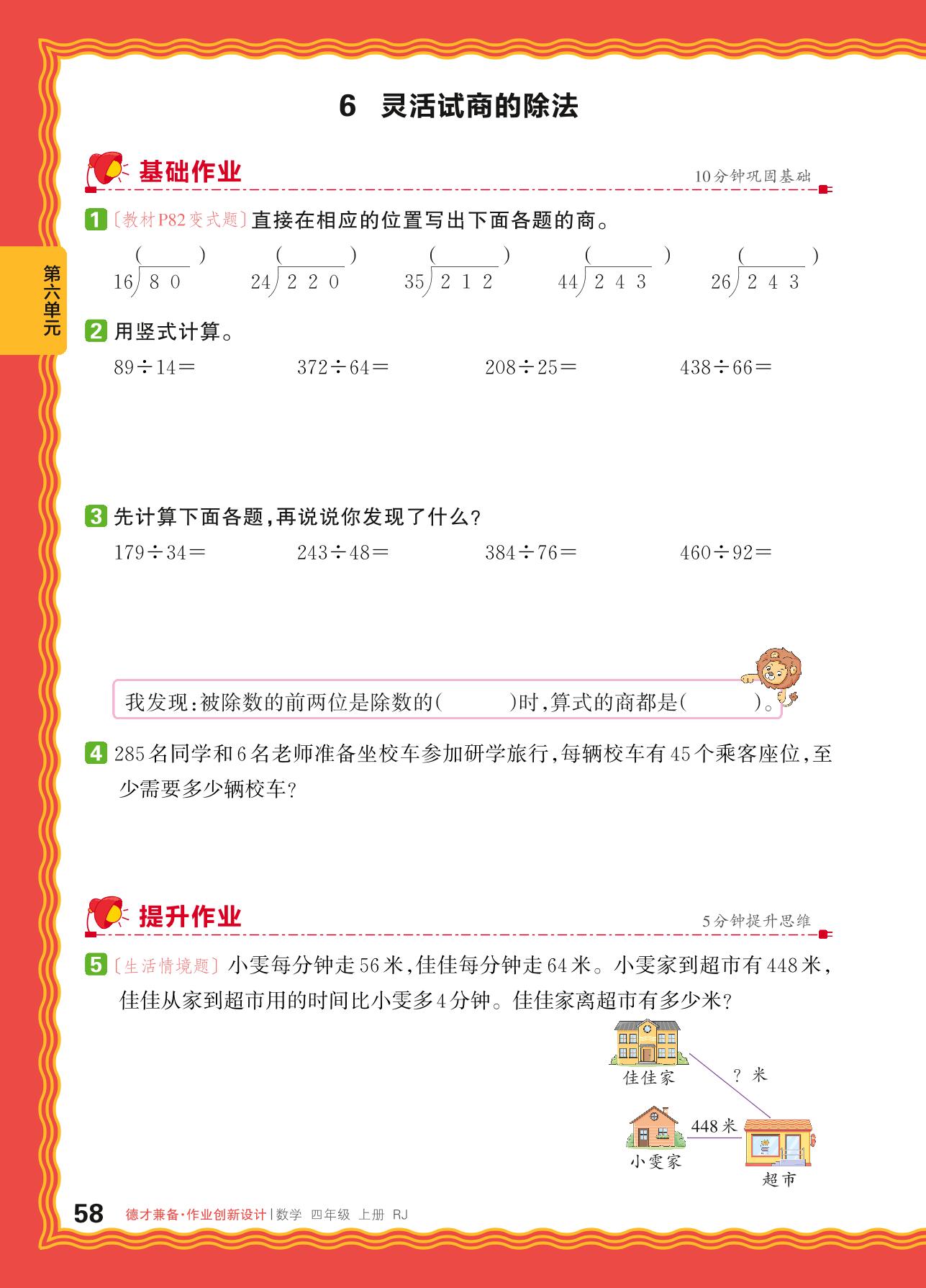 2024秋上册四年级数学人教版 第六单元 除数是两位数的除法——6. 灵活试商的除法_R240820111349613
