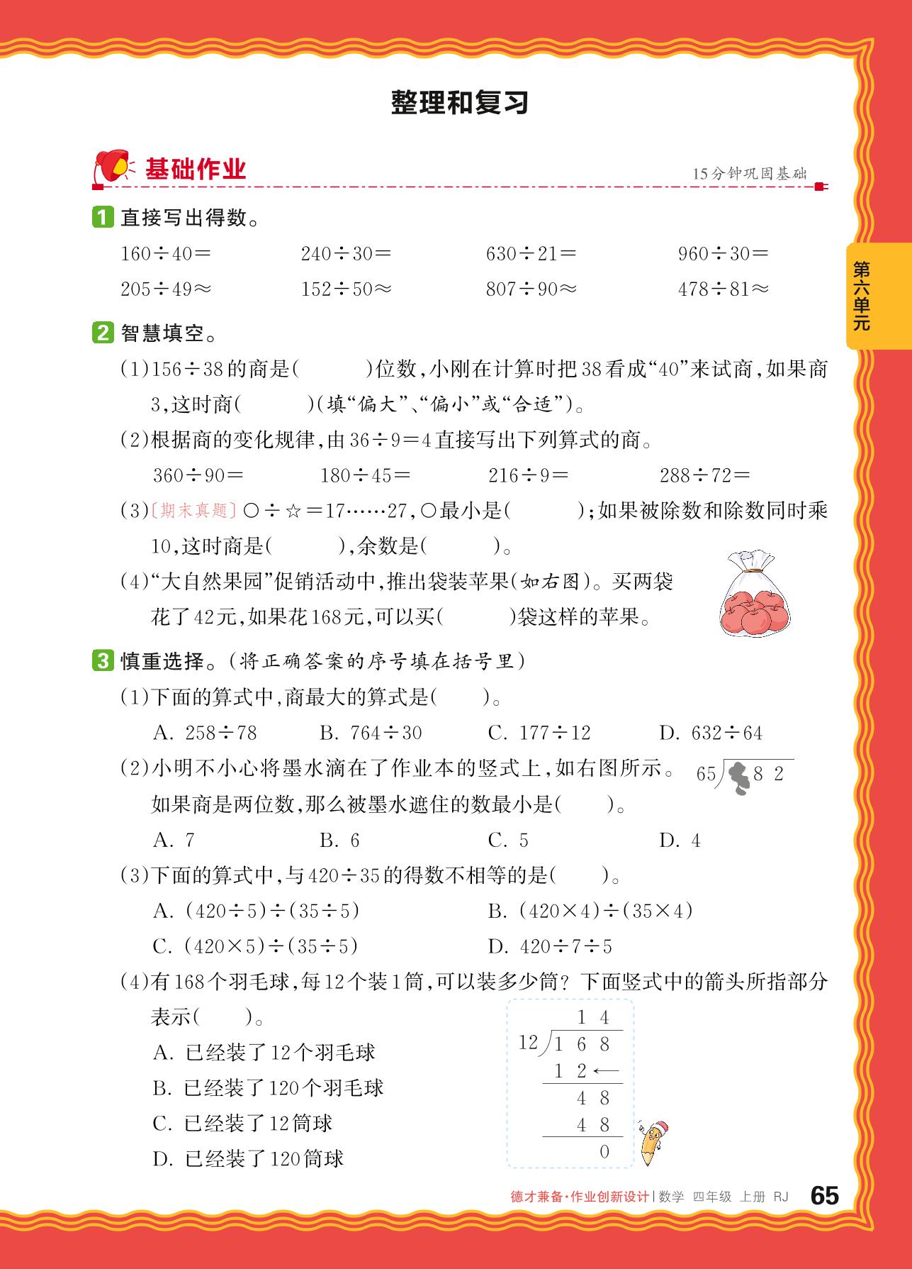 2024秋上册四年级数学人教版 第六单元 除数是两位数的除法——整理和复习