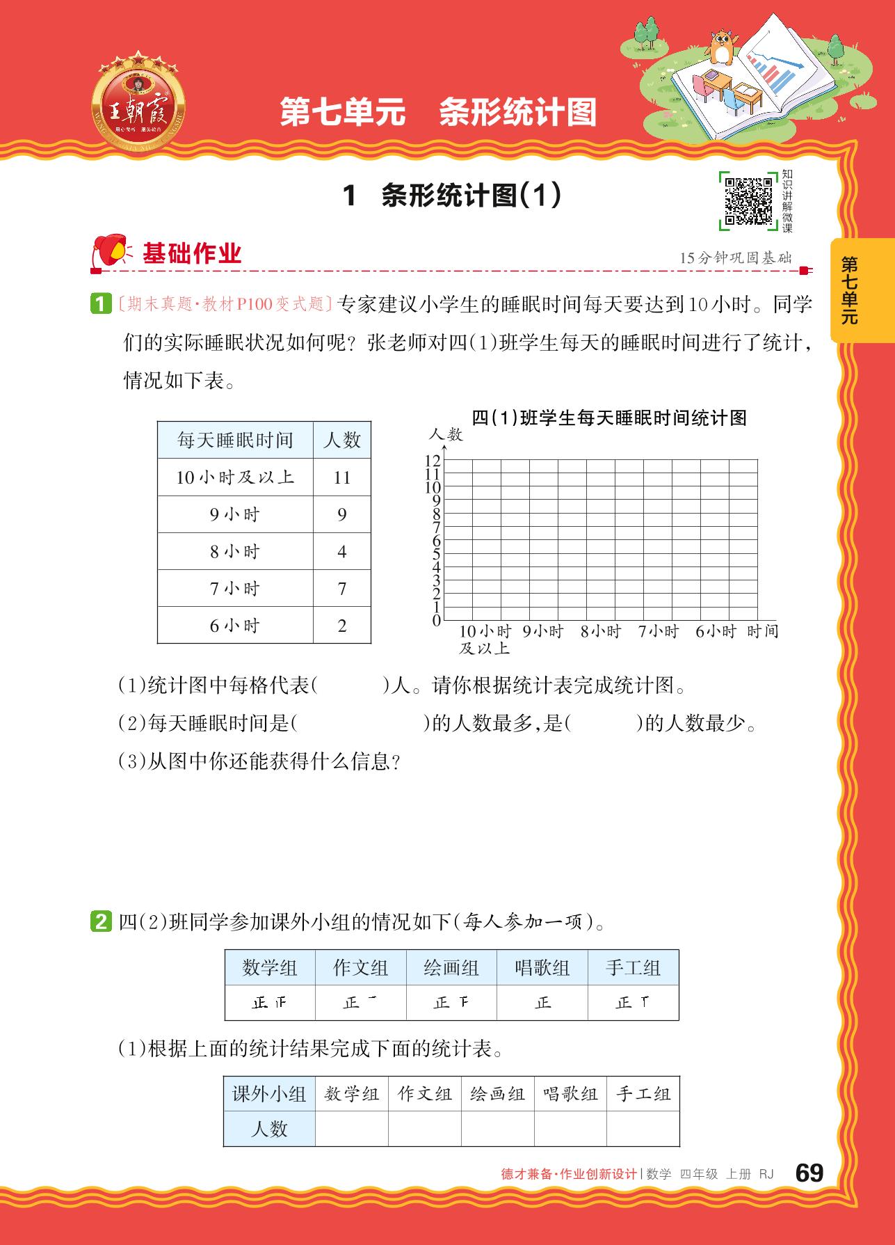 2024秋上册四年级数学人教版 第七单元 条形统计图——1. 条形统计图(1)