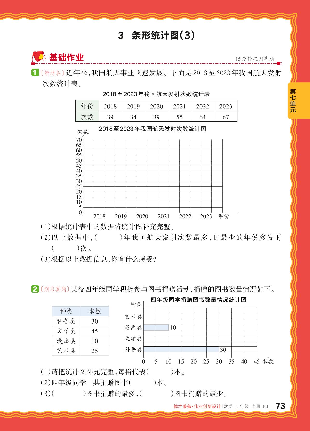 2024秋上册四年级数学人教版 第七单元 条形统计图——3. 条形统计图(3)