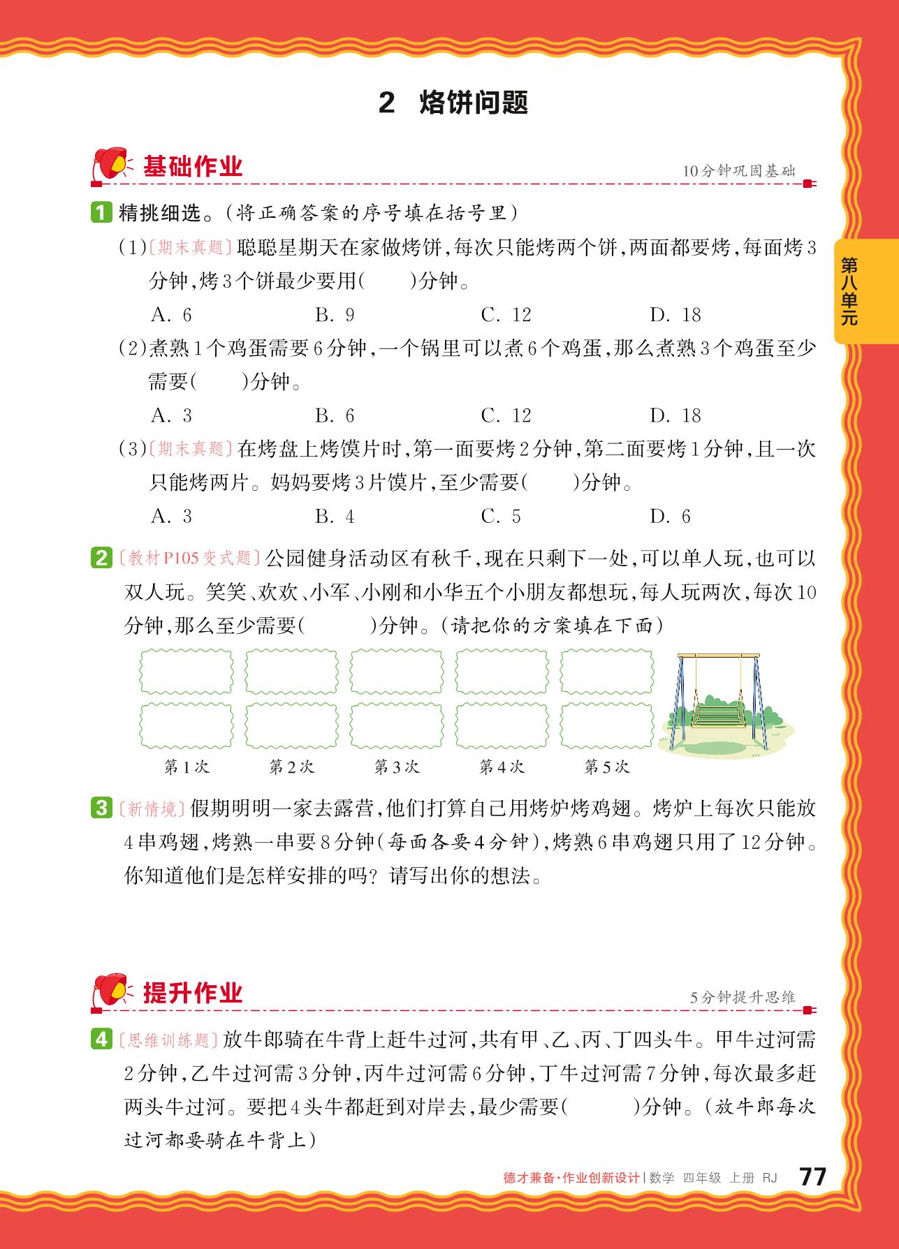 2024秋上册四年级数学人教版 第八单元 数学广角 优化——2. 烙饼问题_R240820111355602