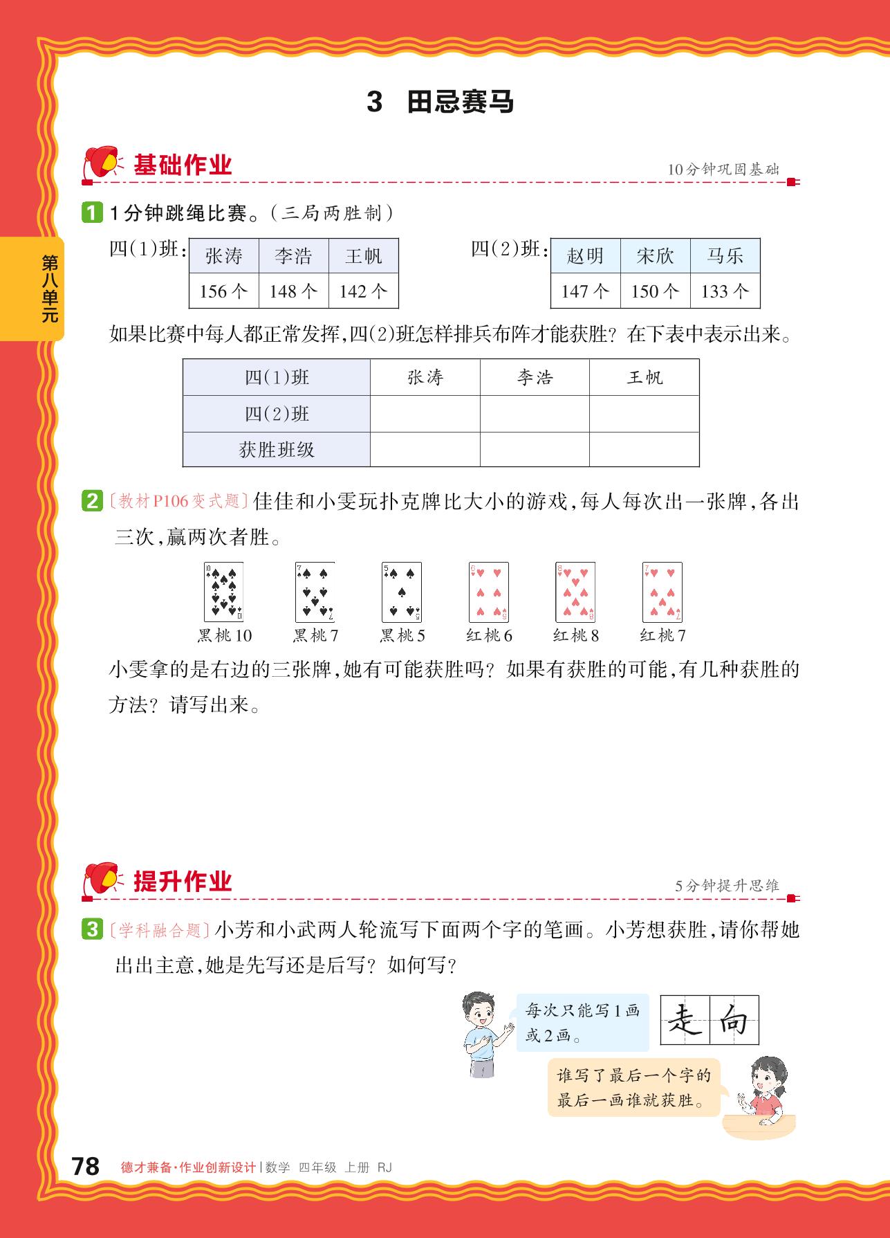 2024秋上册四年级数学人教版 第八单元 数学广角 优化——3. 田忌赛马_R240820111355221