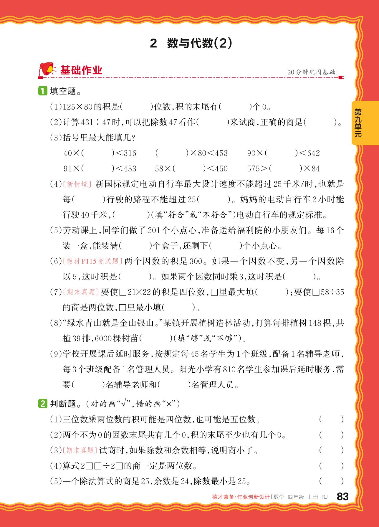 2024秋上册四年级数学人教版 第九单元 总复习——2. 数与代数(2)