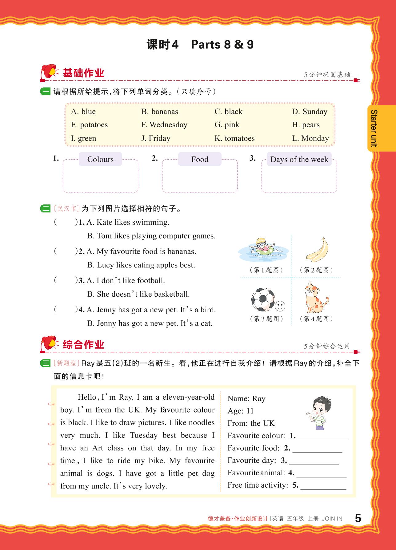2024秋上册五年级英语剑桥版 Starter unit—课时 4 Parts 8 & 9