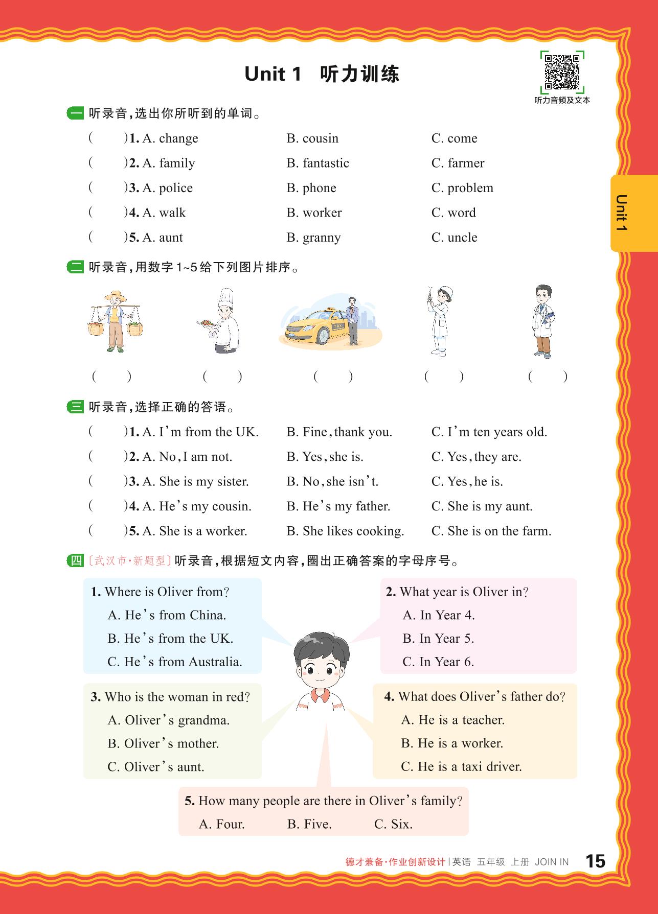 2024秋上册五年级英语剑桥版 Unit 1 听力训练