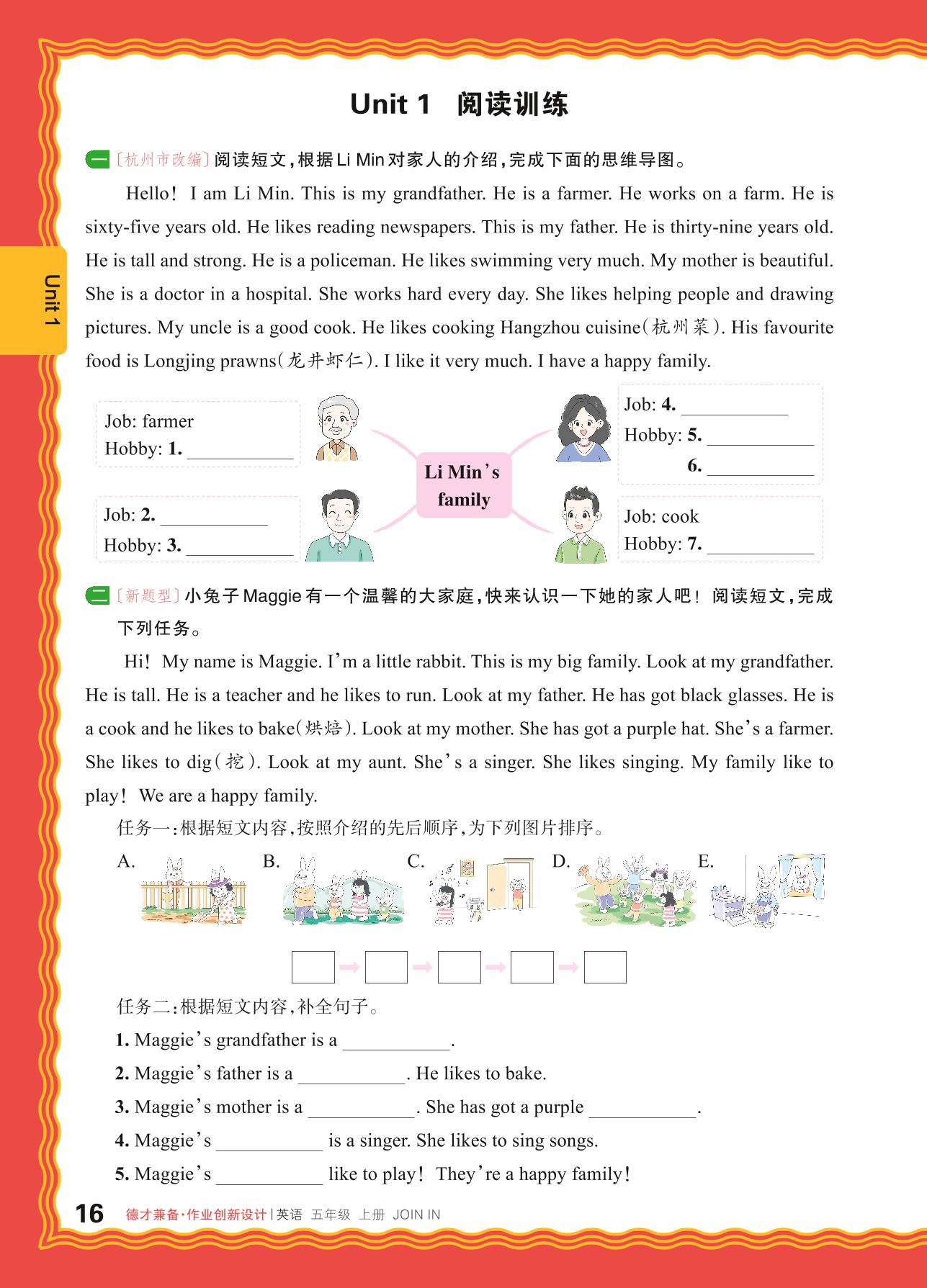 2024秋上册五年级英语剑桥版 Unit 1 阅读训练