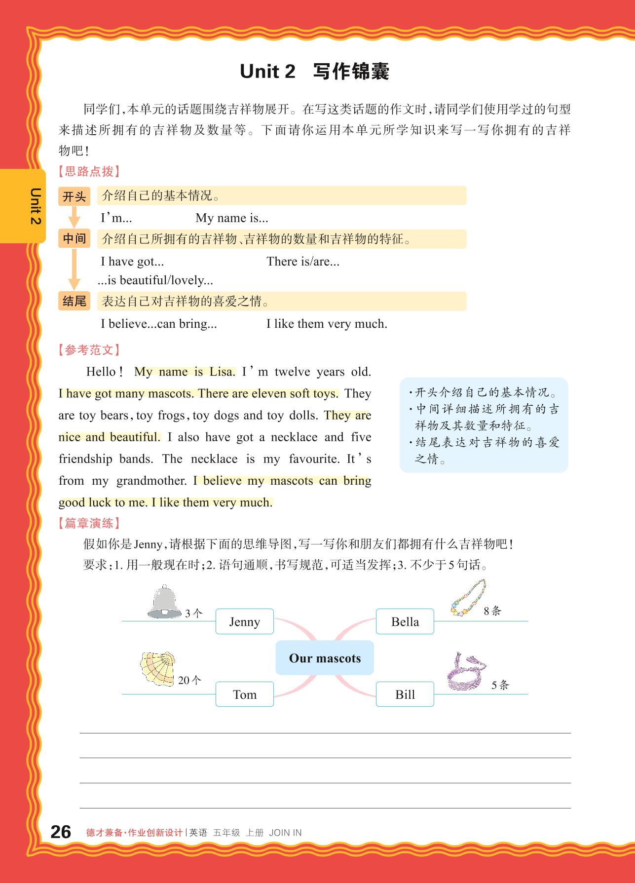 2024秋上册五年级英语剑桥版 Unit 2 写作锦囊