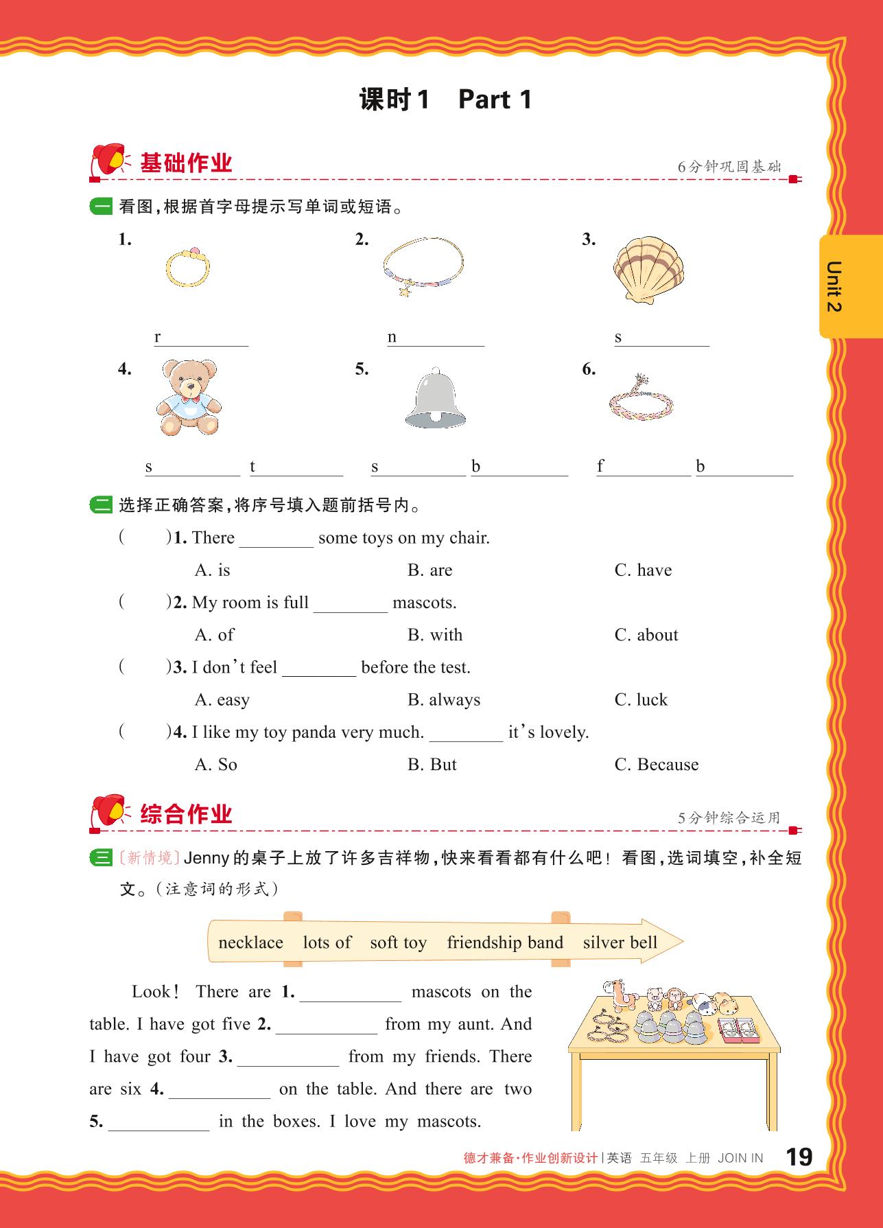 2024秋上册五年级英语剑桥版 Unit 2—课时 1 Part 1