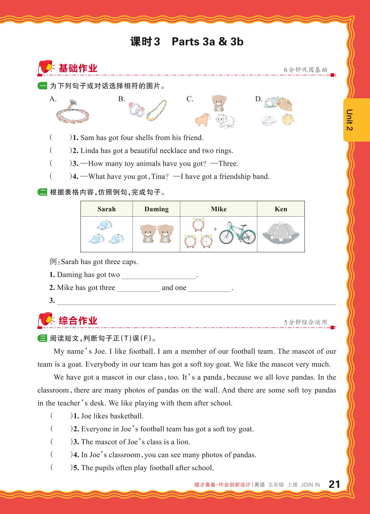 2024秋上册五年级英语剑桥版 Unit 2—课时 3 Parts 3a & 3b