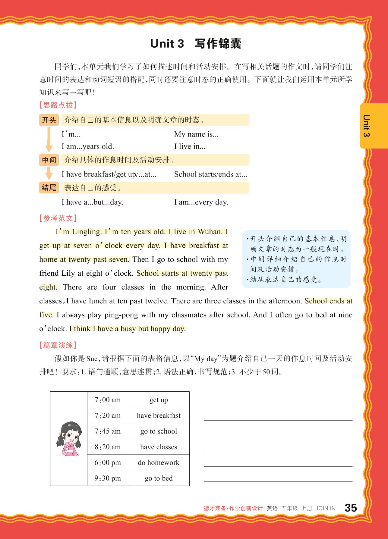 2024秋上册五年级英语剑桥版 Unit 3 写作锦囊