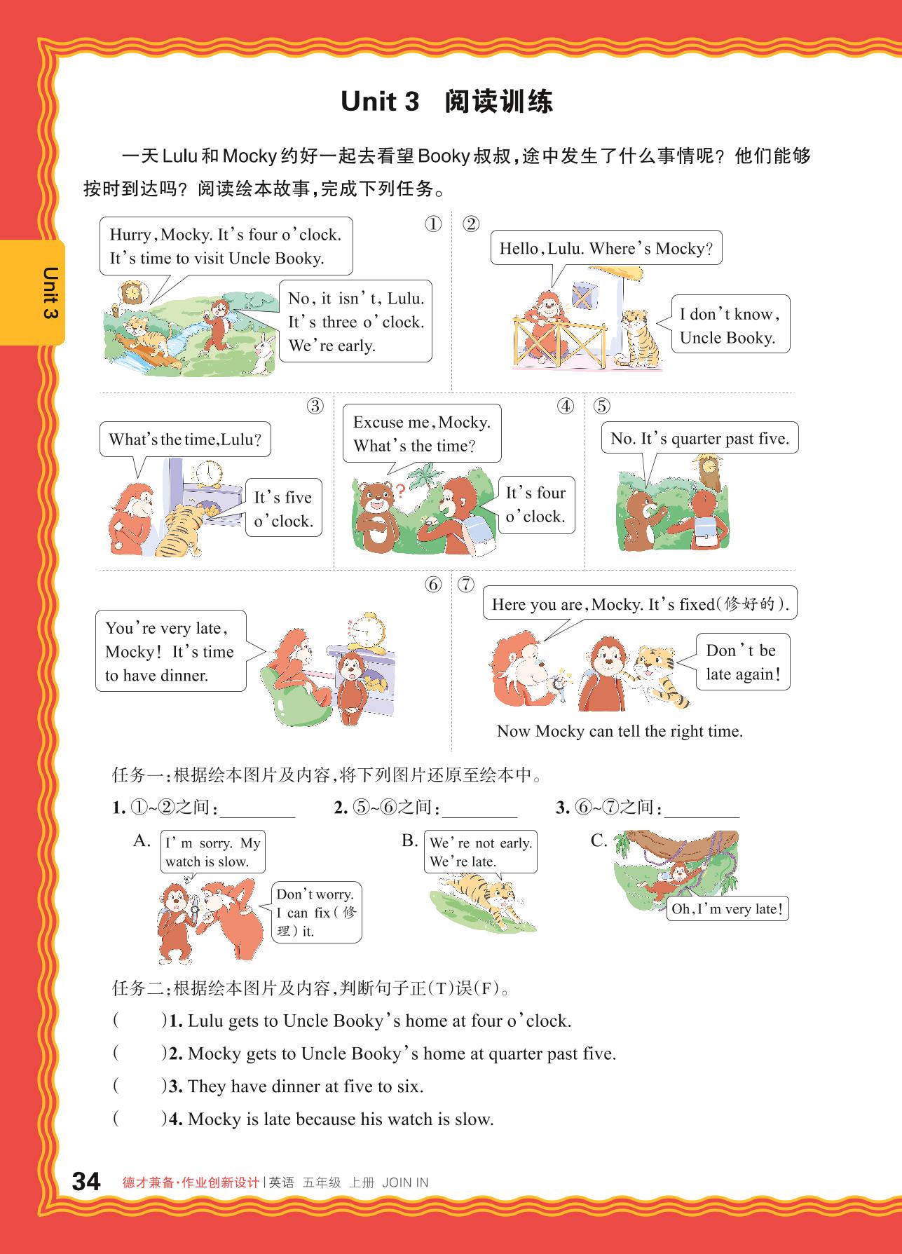 2024秋上册五年级英语剑桥版 Unit 3 阅读训练