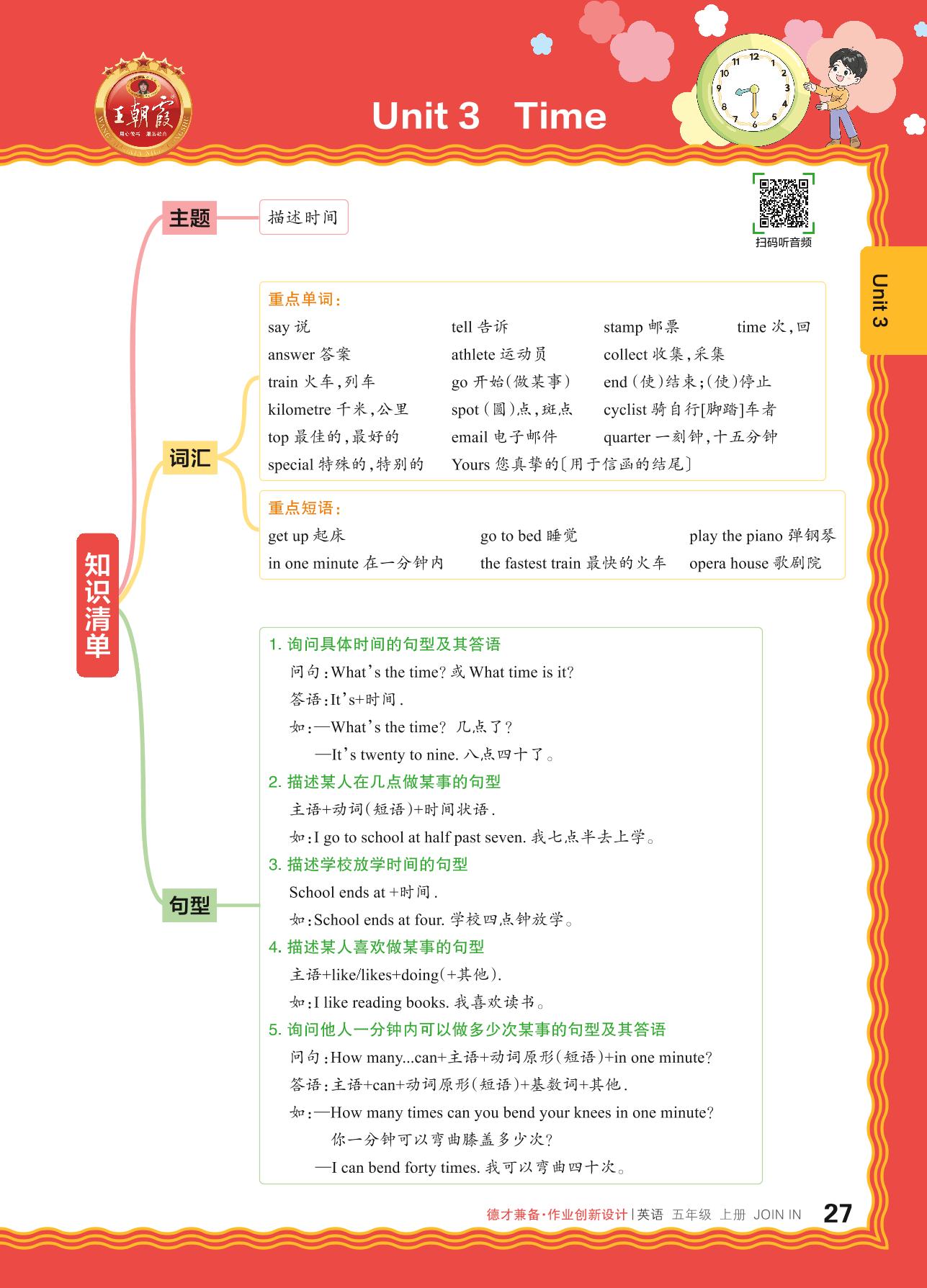 2024秋上册五年级英语剑桥版 Unit 3 知识清单