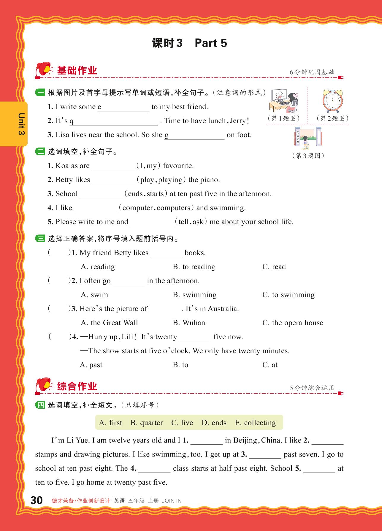 2024秋上册五年级英语剑桥版 Unit 3—课时 3 Part 5